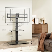 【大型テレビでも安定性抜群】Perlegear テレビスタンド 壁寄せは、台座が横幅52cm、奥行40cmと広くとられていて、本体重量も13.5kgあるので、どっしりと安定感がありテレビが倒れるような不安は一切ありません。底面に厚さ10mmの強化ガラスを採用して、支柱のパイプに直径8cmの頑丈かつ高品質の強化スチールを採用するので、さらに安定性が確保しました。スタンドに安全ロック機能が備わって、テレビをしっかり固定できて、大きなテレビでも安定します。