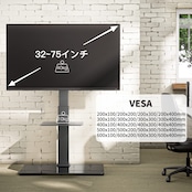 【取り付け可能なテレビ】①対応インチ:32~75インチ以内。②対応重量:40kg以内。③対応VESA:背面に正方形もしくは長方形に4点のネジ穴が開いています。ネジ寸法は横が200~600mm以内、縦が100~400mm以内が必要です。④対応タイプ:平面タイプ/湾曲タイプ、凹凸/段差/干渉配線があるタイプに対応可能。
