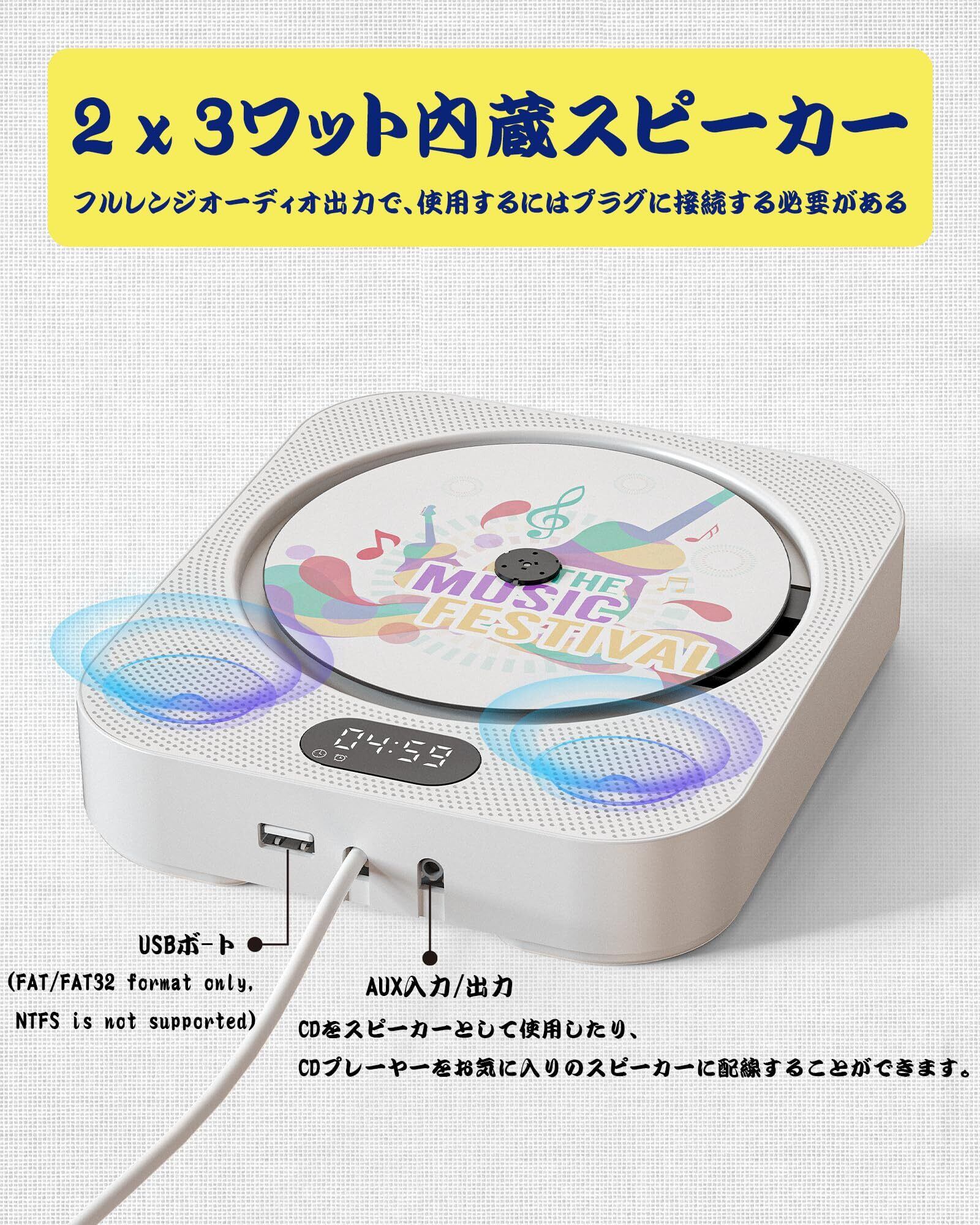 【音楽アラームとギフト】タイマー設定を利用して電源のオン/オフができ、目覚まし時計としても使えます。好きな音楽をアラームとしてセットし、気持ちよく朝を迎えられるのは素晴らしい体験です。また、LEDディスプレイに機能やモードが表示され、シンプルで使いやすく、とても便利です。このCDプレーヤーのカラーとデザインは様々なインテリアにマッチし、装飾品として飾ることや、壁に掛けてアクセントとして使用することができます。設置も操作も簡単で、子供、年配者、両親、友人への理想的なギフトです。注意:タイマー設定でのアラーム機能の詳細については取扱説明書をお読みください。LEDが気になる場合はスリープモードでLEDスクリーンをオフにすることができます。