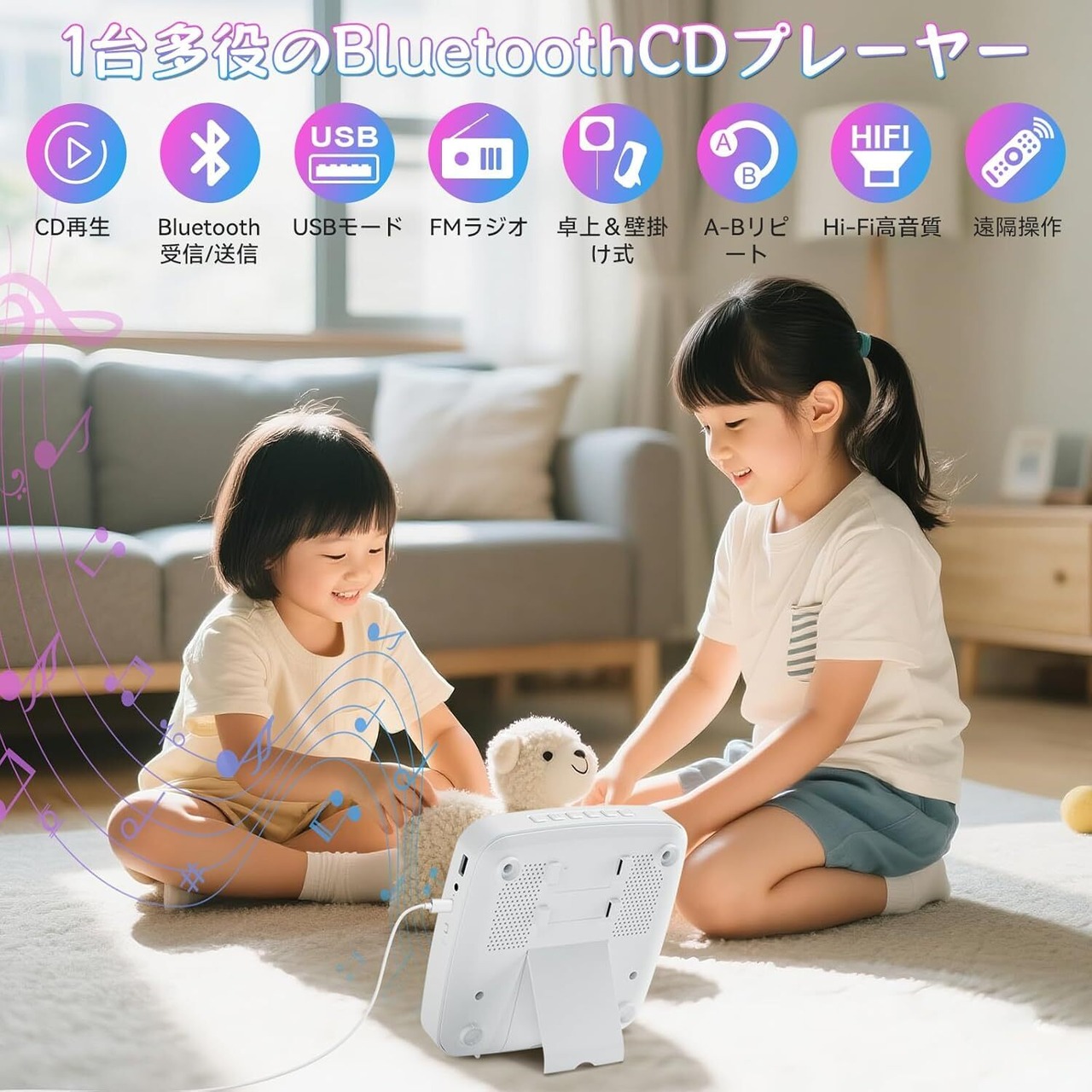 【Bluetooth受信/送信両対応のCDプレーヤー:】ご注意:このCDプレーヤーは電池内蔵はなく、電源に繋いでいないと使用できません。Bluetooth受信と送信両方の機能を搭載して、Bluetooth受信モードで、スマホ、タプレット、MP3などの設備と接続でき、これら設備の音楽を楽しめあす。また、Bluetooth送信モードで、ワイヤレスイヤホン、スピーカーなども接続が可能で、より自由により多い音楽を楽しめます。