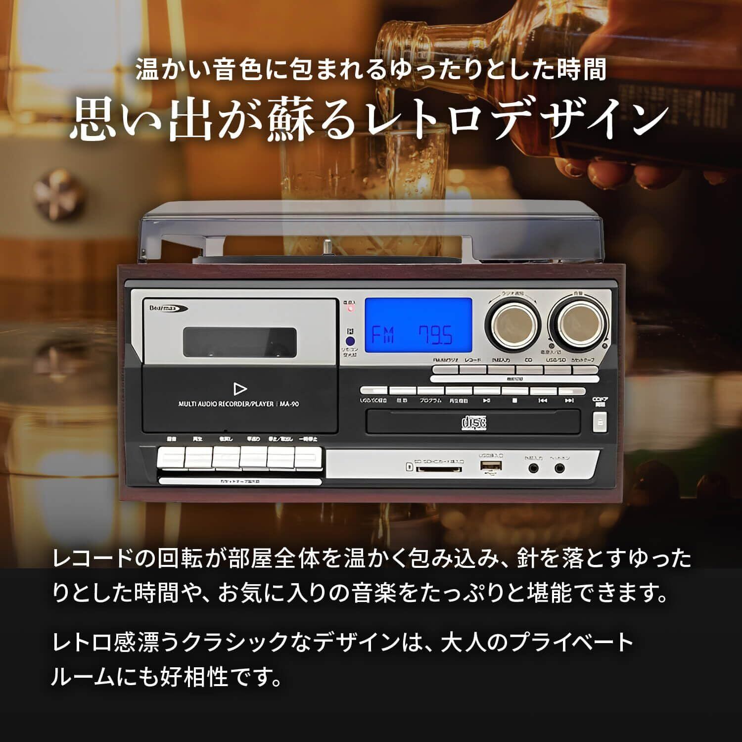 [東京Deco] マルチレコードプレーヤー 多機能プレイヤー スピーカー内蔵 録音機能 木目調 [レコード/CD/CD-R/RW/カセットテープ再生・AM/FMラジオ/FMステレオラジオ搭載・デジタル録音(SD/USB)] 回転速度3段階 リピート機能 EP/LP/SP盤再生 イヤホン 録音端子 外部入力可能 レトロ 昭和 軽量 簡単操作 ウッド スピーカー内蔵 km028