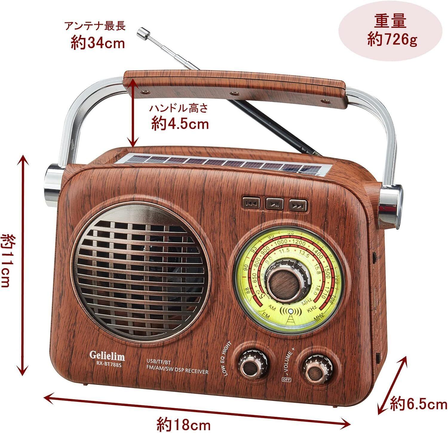 ポータブルラジオ FM/AM/SW/ワイドFM対応 高感度 ラジオ USB/SDカード対応 MP3プレーヤー 大音量 USB充電/太陽光充電対応 レトロラジオ LEDライト付 Gelielim