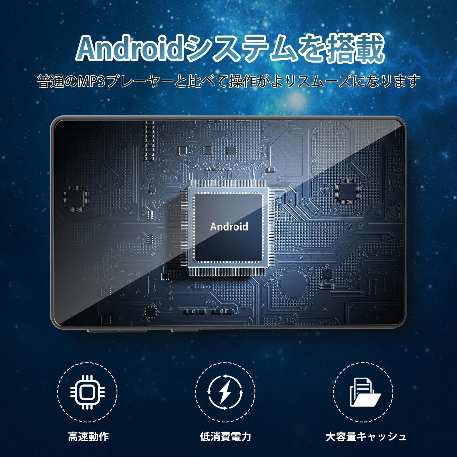 【androidシステムを搭載する多機能MP3プレーヤー】androidシステムをMP3プレーヤーは、操作ラグと遅延がなくて普通のMP3プレーヤーと比べて操作がよりスムーズになります。更に、音楽鑑賞の他に、ビデオ再生、写真閲覧、電子ブック、FMラジオ、録音と目覚まし時計など生活を便利にする様々な機能も満載しており、あなたの生活をより充実したものにします。(注:FMラジオ機能を使用する場合は、有線ヘッドセットと接続する必要があります。)