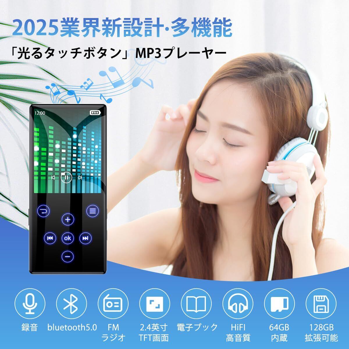 Olycism MP3プレーヤー Bluetooth5.0搭載 64GB 最大128GBまで拡張可能 2.4インチ大画面 光るタッチボタン HIFI音質 スピーカー搭載 多機能デジタルオーディオプレーヤー FMラジオ/電子ブック/アラームなどの機能付き スポーツ/言語学習/通勤などに適用 ブラック