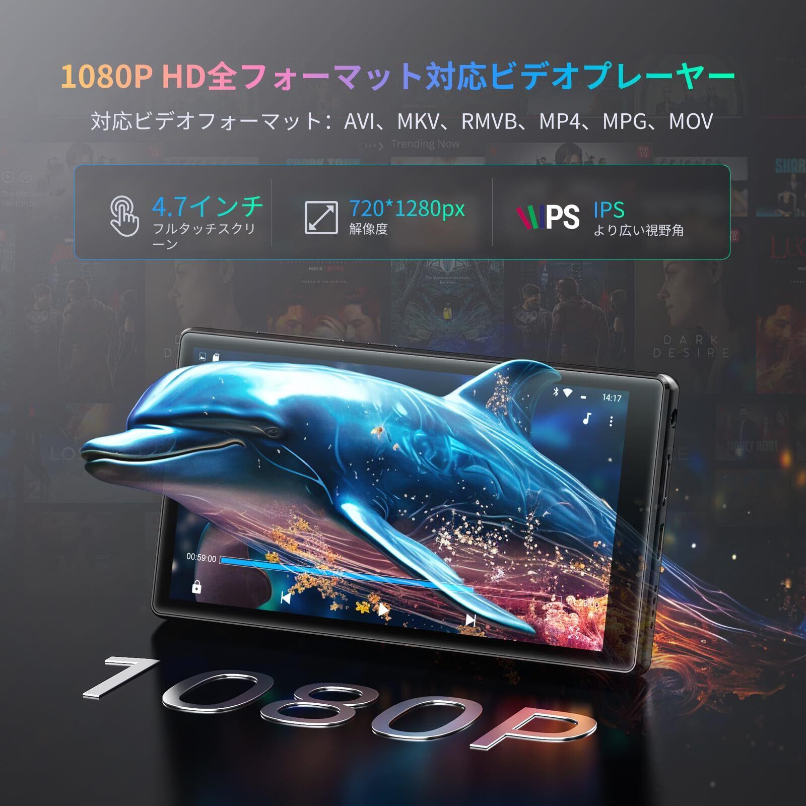 【フルフォーマット1080P MP4プレイヤー】4.7インチ高解像度(1280*720)フルタッチスクリーン(G+F+Fマルチタッチ)を採用。広い視野角と正確なタッチ操作を実現し、1080P HD動画をスムーズに再生。AVI、MKV、RMVB、MP4、MPG、MOVなどほとんどの動画フォーマットに対応(変換不要)、没入型の映画視聴体験を提供。