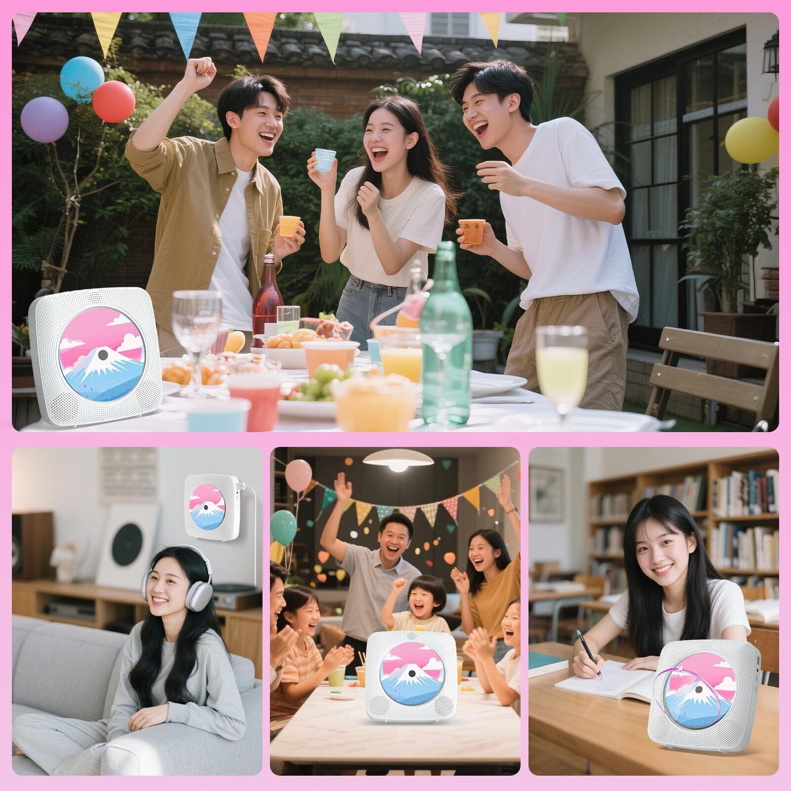 Gueray CDプレーヤー 卓上&壁掛け式 Bluetooth受信/送信 HiFiスピーカー内蔵 cdプレイヤー 多機能 FM/USBなどに対応 操作簡単 リピート/A-Bリピート再生 mp3対応 イヤホン対応 防塵カバー付き CDラジカセ リモコン 音楽再生/語学学習/胎児教育 日本語説明書付き ホワイト