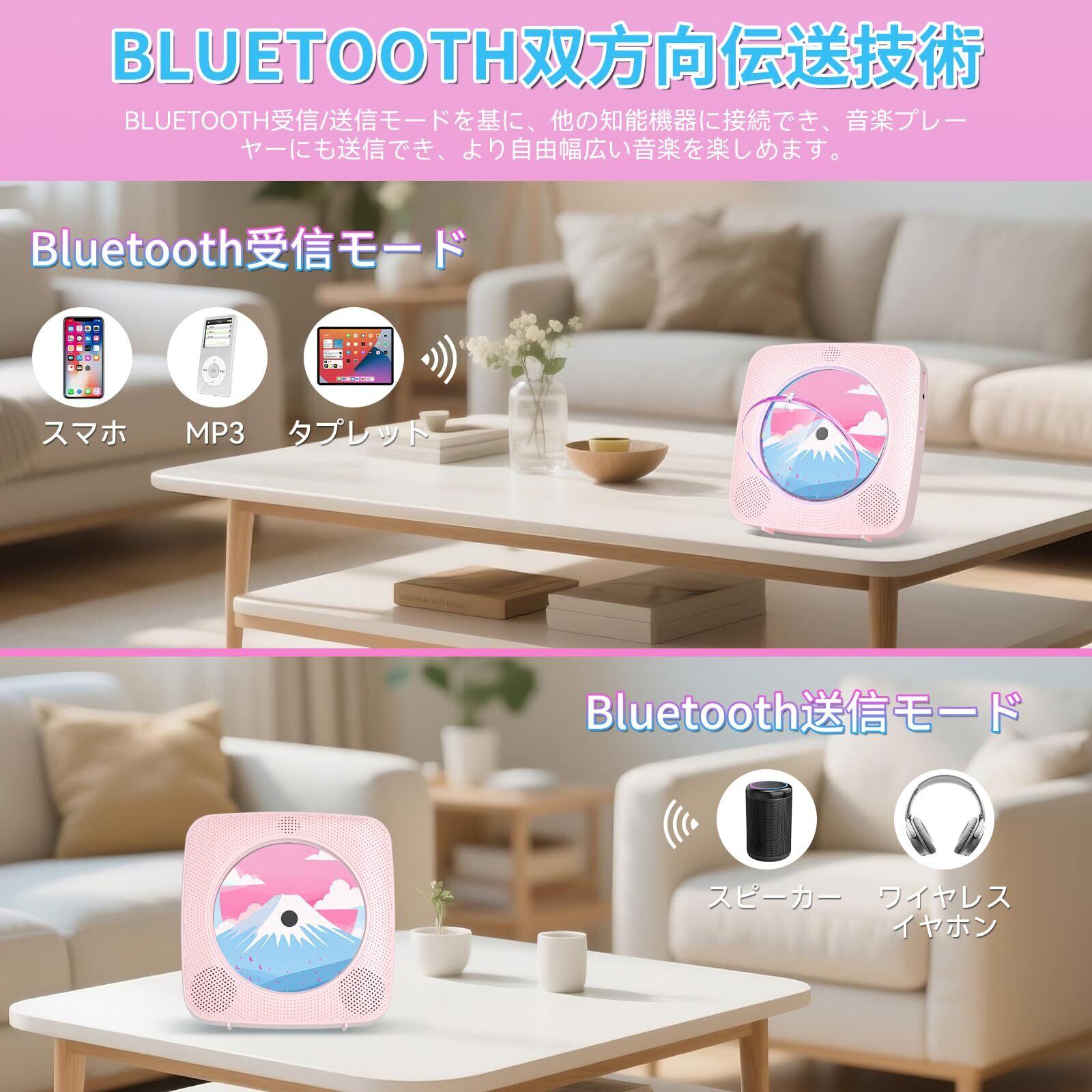 Gueray CDプレーヤー 卓上&壁掛け式 Bluetooth受信/送信 HiFiスピーカー内蔵 cdプレイヤー 多機能 FM/USBなどに対応 操作簡単 リピート/A-Bリピート再生 mp3対応 イヤホン対応 防塵カバー付き CDラジカセ リモコン 音楽再生/語学学習/胎児教育 日本語説明書付き ピンク