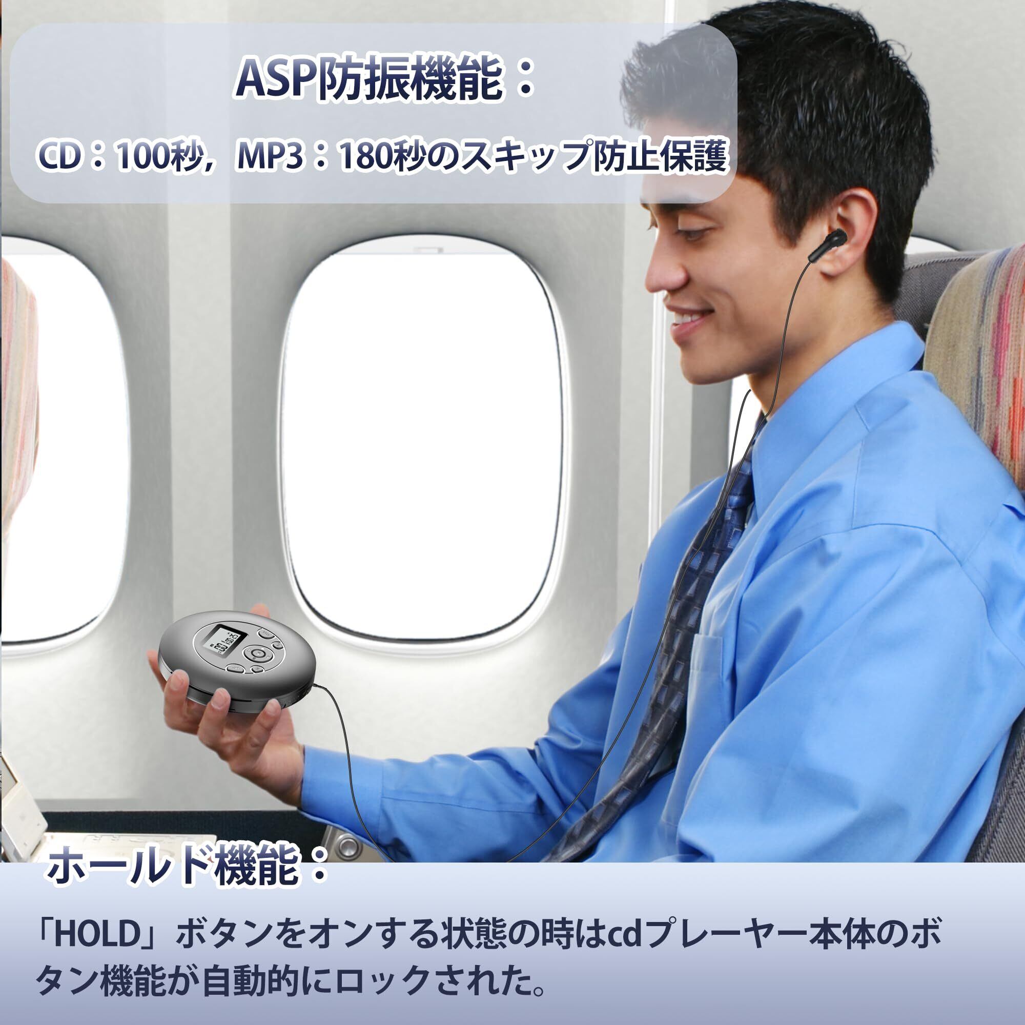 ②【1000mAh充電池&誤作動防止】この充電式CDプレーヤーは1000mAhの電池を内蔵しており、付属のUSBケーブルでPC、パソコン、モバイル電源に接続して充電できます。一度フルー充電で8時間くらい連続再生できます.約3-4時間に充電完了可能です。本機はホールド機能(誤作動防止)を付きて、【HOLD】ボタンはONにすると、何か操作をロックできます。この時に他のボタンの誤操作を防止出来ます。▲注意:電力不足の場合、電源が入らなかったり、ディスクが読み込めなかったりすることがあります。