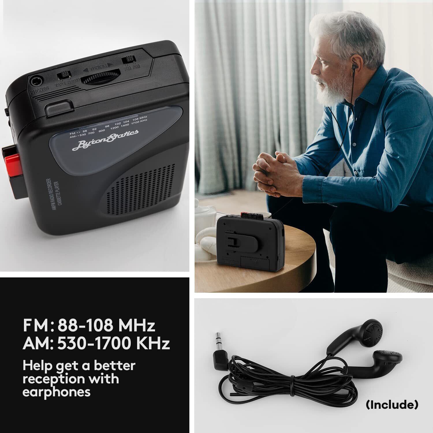 ByronStatics カセットプレーヤー FM Am ラジオ ウォークマン ポータブルカセットコンバーター 自動停止システム カセットテープマイクレコーダー 単三電池2本またはUSB電源ベルトクリップ ヘッドホン付き ブラック