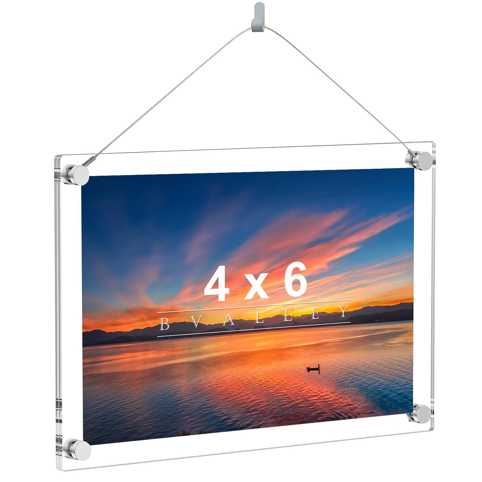 BValley 透明アクリルフォトフレーム 写真立て、額縁、スタンドタイプ 写真フレーム、両面透明 ピクチャー、 ポストカード フレーム はがき/A6サイズ対応,ハガキ用,横縦置き兼用 (102x152mm KG判)