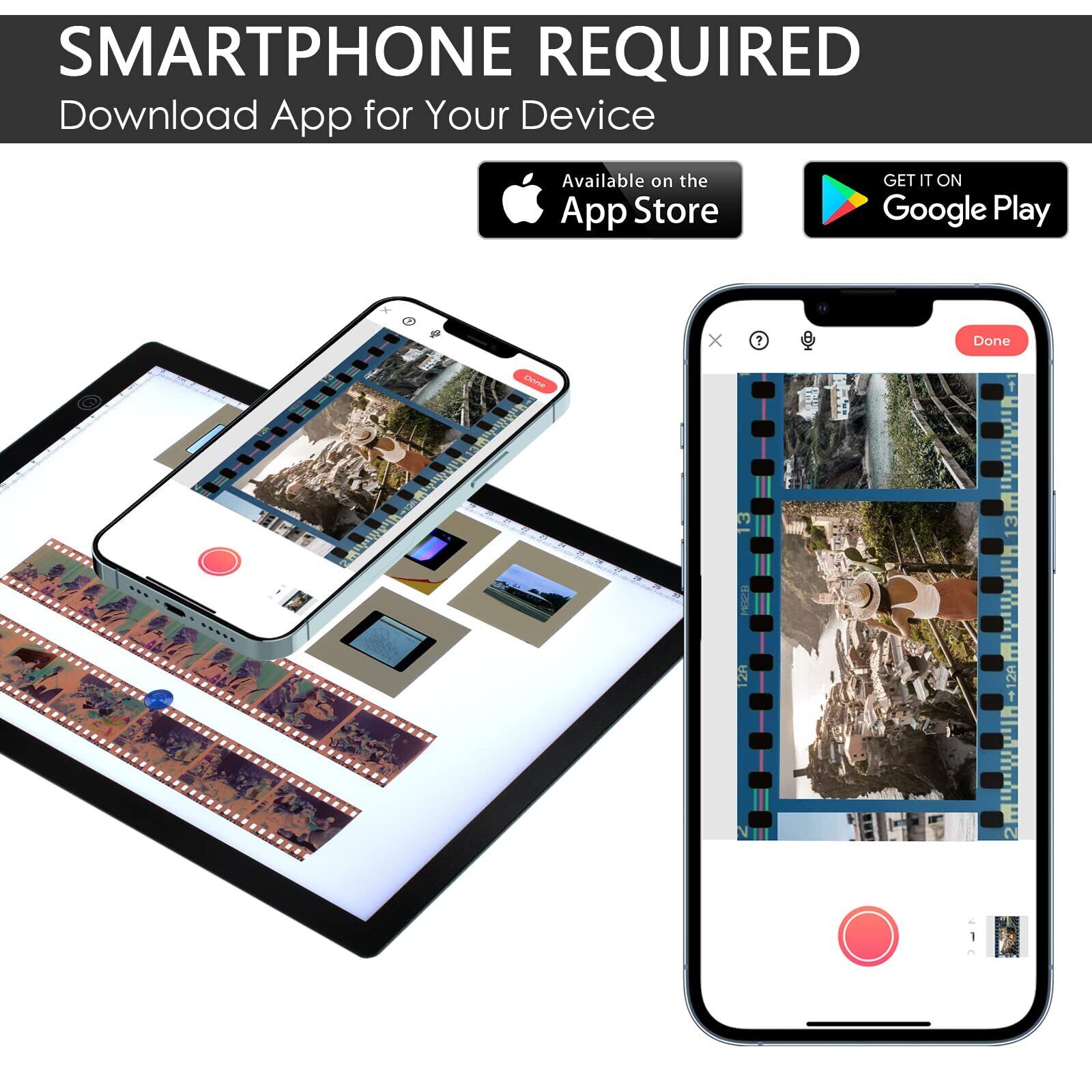 スライドとネガをデジタル化:SlideScanアプリ(スライドのスキャン用)とFilmBoxアプリ(ネガのスキャン用)をダウンロードして、スライドとネガをスキャンしてデジタル画像に変換します。 アプリで写真を編集したり、ソーシャルメディアで共有したりできます。