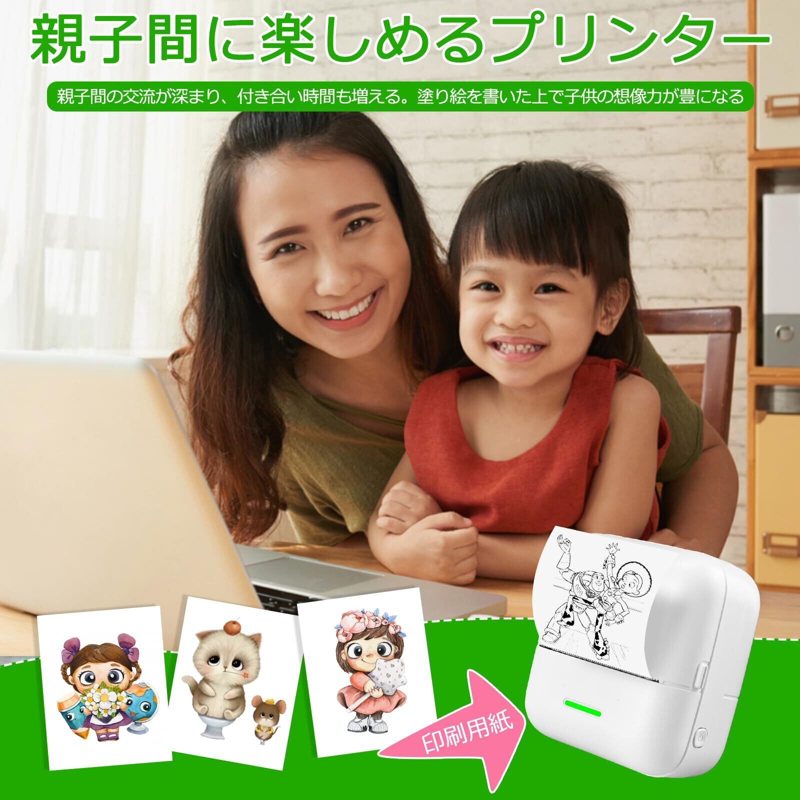 ポータブルミニプリンター 、スマホ対応、多機能小型サーマルプリンター、iOSとAndroid対応Bluetooth接続、USB充電式 1200mAh 200dpi バッテリー搭載白黒モバイルフォトプリンター、勉強/ノート/手帳/領収書/プレゼント/でき葉書/買い物リスト【本体+感熱用紙5巻+シール用紙5巻+カラー用紙3巻+収納袋+カラーペン】日本語説明書