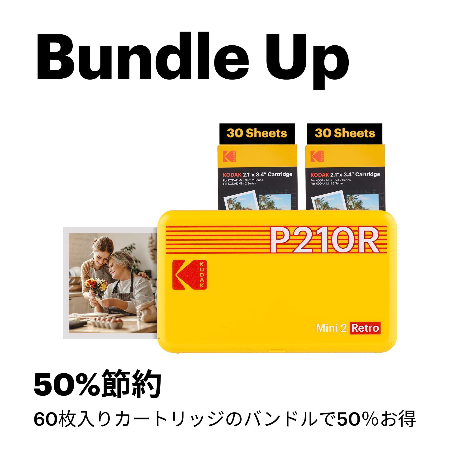 コダックKodak Mini 2 レトロ 4PASS スマホプリンター/インスタントプリンター/チェキプリンター(5.3x8.6cm)+プリンター本体8枚入り+60枚バンドル、ブラック