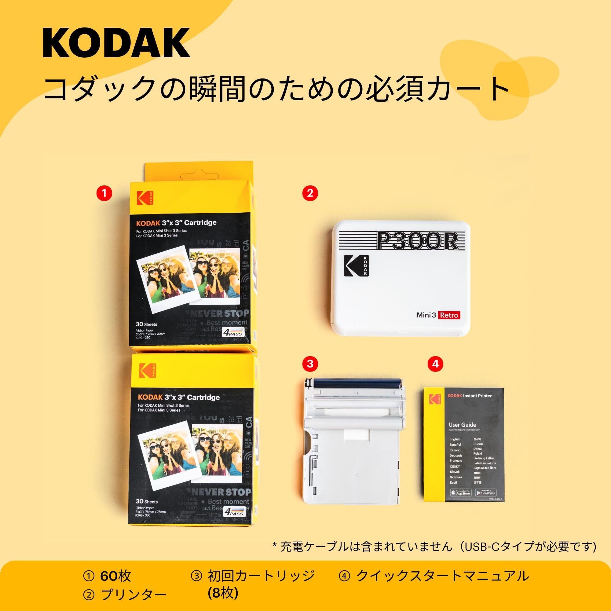 コダック KODAK Mini 3 レトロ 4PASS ポータブルフォトプリンター(7.6cmx7.6cm)+プリンター本体8枚入り+60枚バンドル、ホワイト