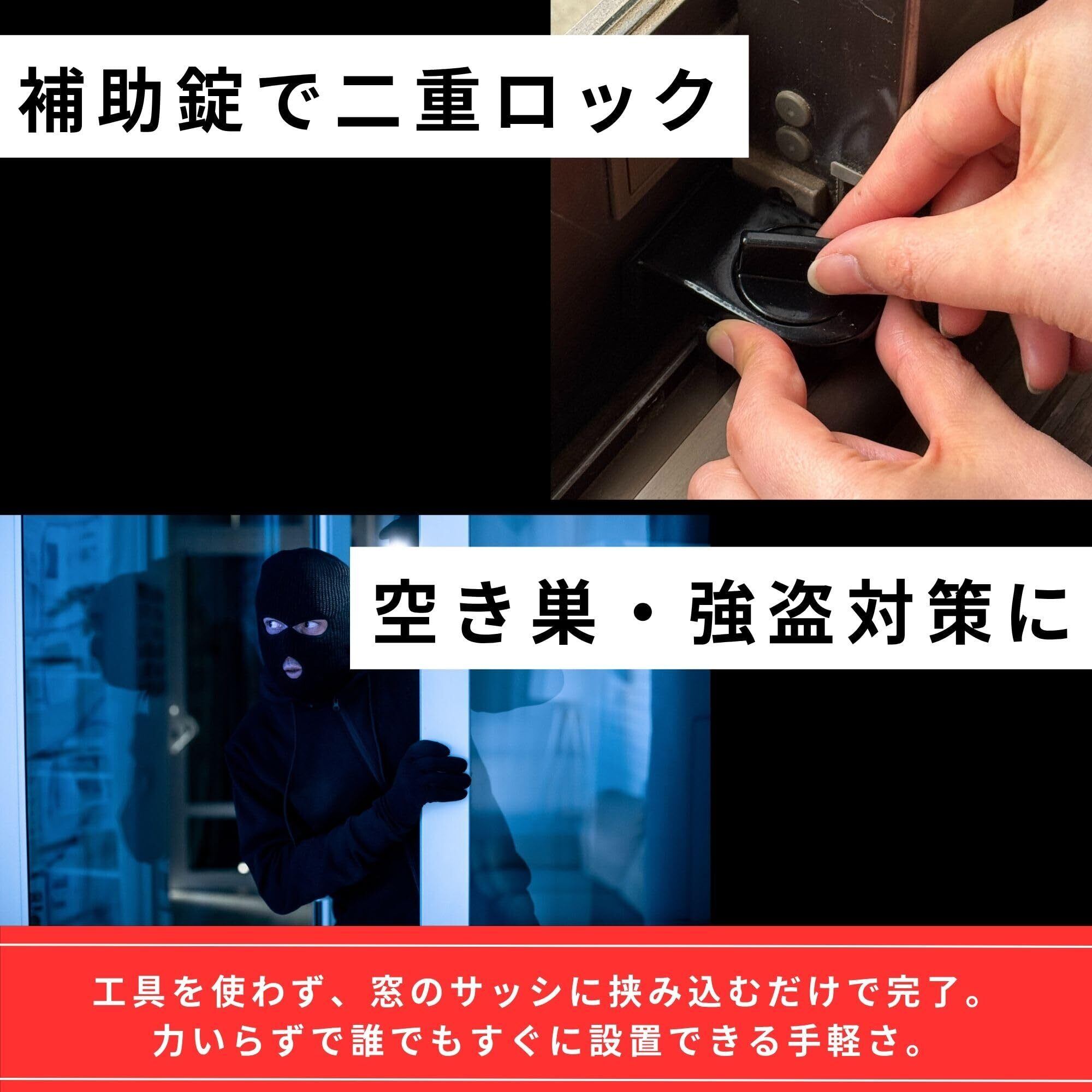 【窓の補助錠で防犯力アップ】 窓用の防犯グッズ。補助錠を追加することで窓を強固に固定でき、空き巣や強盗の侵入を抑止します。簡単な対策で防犯力を大幅に高めることができます。
