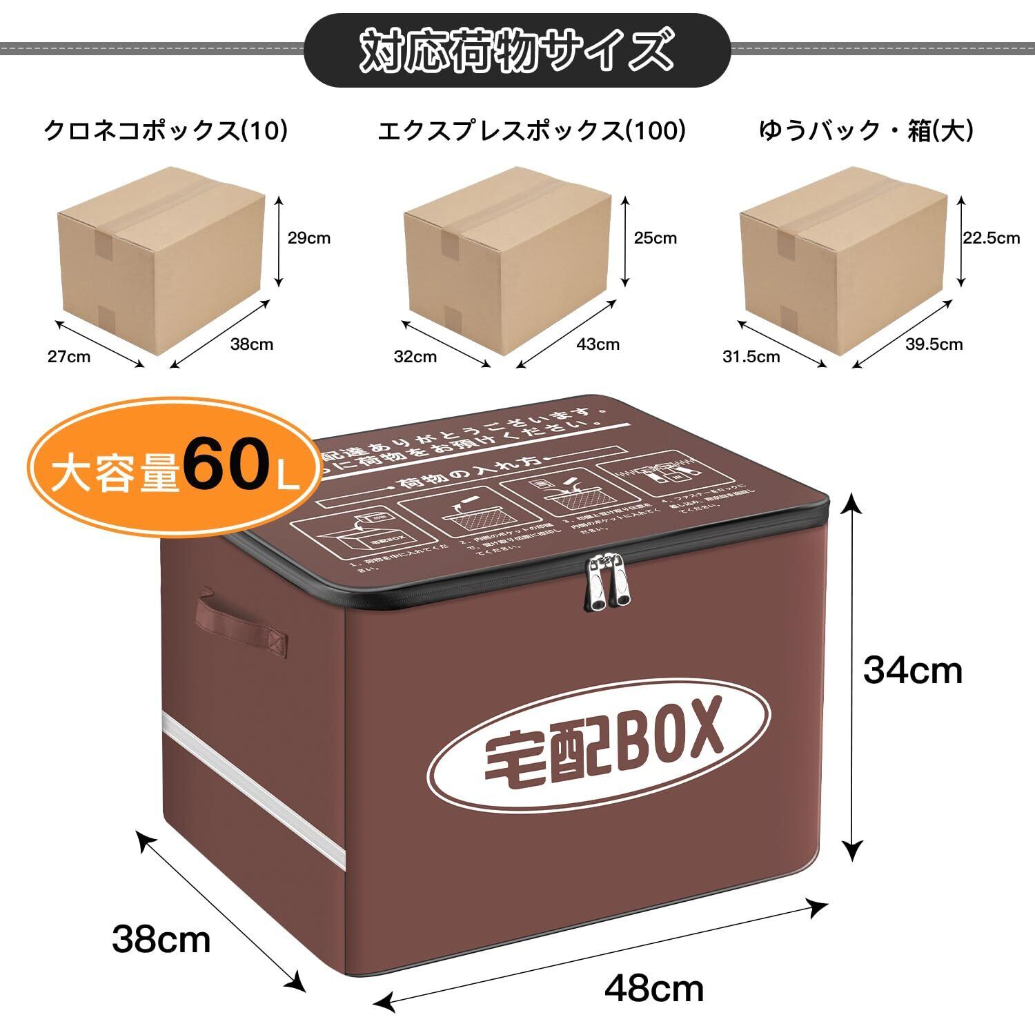 【合理的なサイズ 超大容量】60Lの大容量宅配ボックス、サイズは48x38x34cm、殆どの宅便物を預け入れることができます。宅配BOXの内側にポケットがあり、印鑑や南京錠などをポケットに入れます。宅便物を受け取る必要がない時にも収納ボックスとして衣服、雑物などを収納できます。