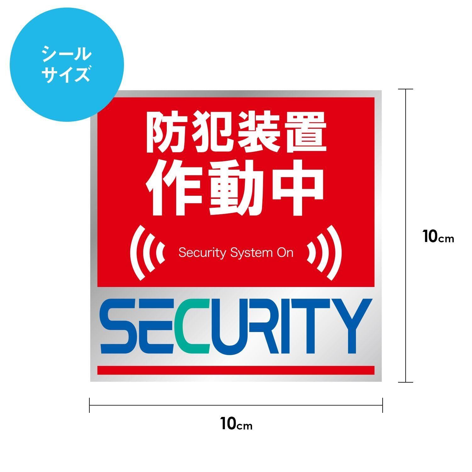 【どんな場所にも貼りやすいサイズ感】10cm角の正方形デザインは、視認性と使い勝手のバランスが良く、玄関ドアや車のガラス、ポスト、インターホン周辺など幅広い場所に貼りやすいのが特長です。小さすぎず、大きすぎないサイズで圧迫感なく設置でき、防犯対策として効果的にアピールできます。
