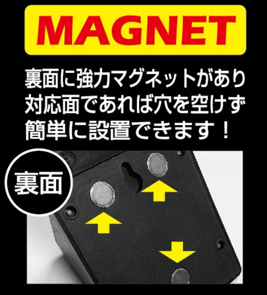 ●裏面に強力マグネットがあり、対面であれば穴を空けず簡単に設置できる