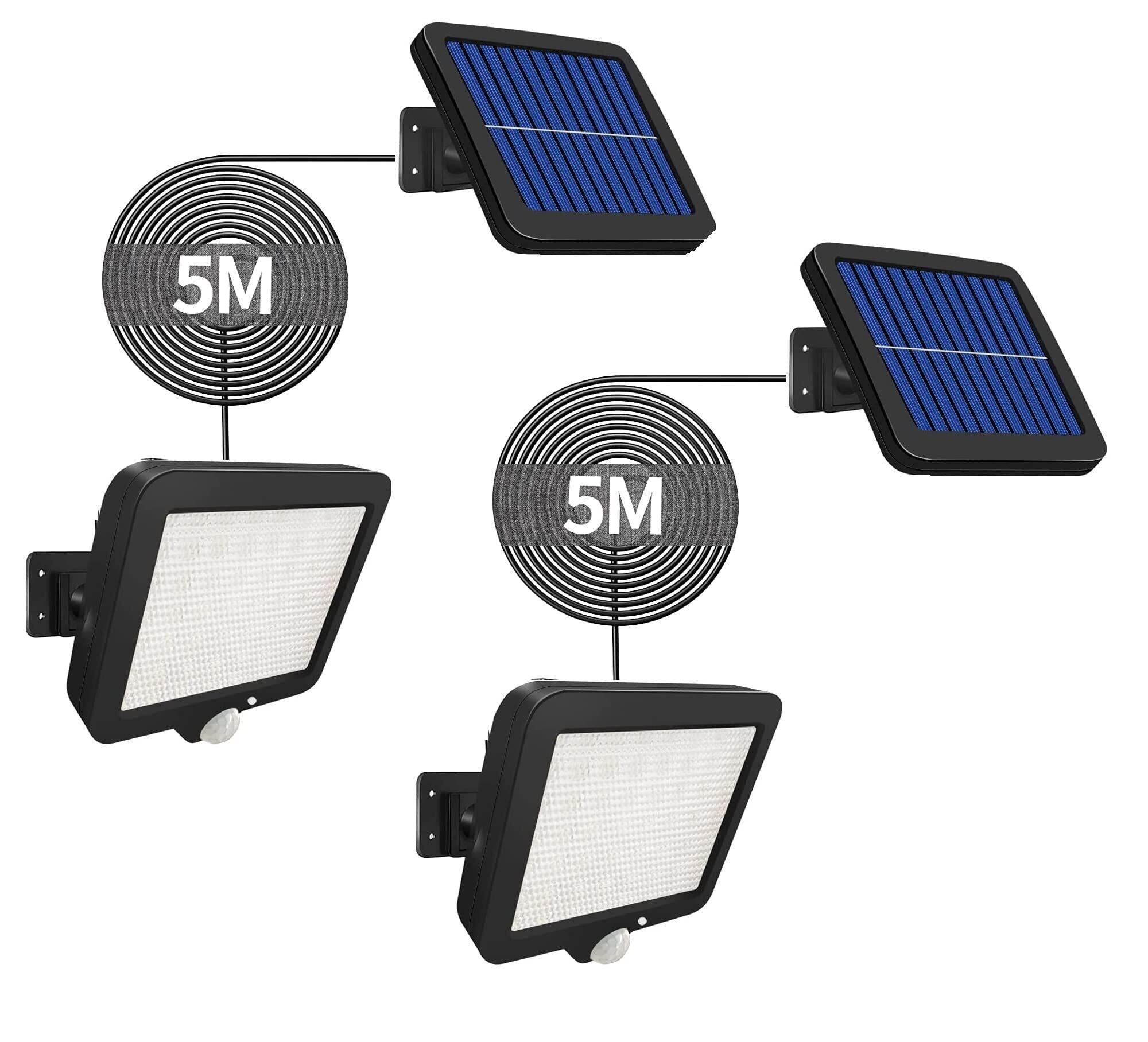 分離式のソーラーパネル:従来のソーラーランプと比較して、ソーラーパネルをランプ本体から分離しています。付属の5m / 16.5ft防水ケーブルを使用して、日当たりの良い場所にソーラーパネルを設置できます。日中は電力を節約し、夜は長くて明るい光を生成します。