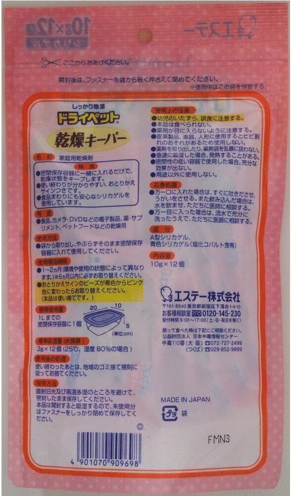 ドライペット 【まとめ買い】 除湿剤 乾燥キーパー シリカゲル 12枚入×2個 カメラ 食品用 乾燥剤 湿気取り
