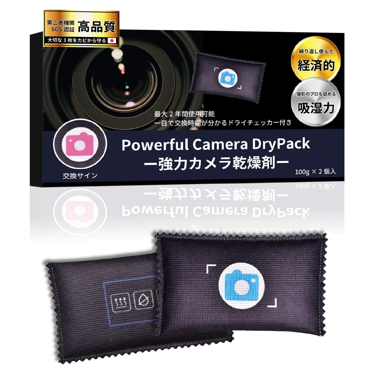 【繰り返し使える】カメラ用 除湿剤 100g×2個 8×13cm 分かりやすいドライチェッカー付き! カメラレンズの保管に 強力乾燥剤 防湿剤