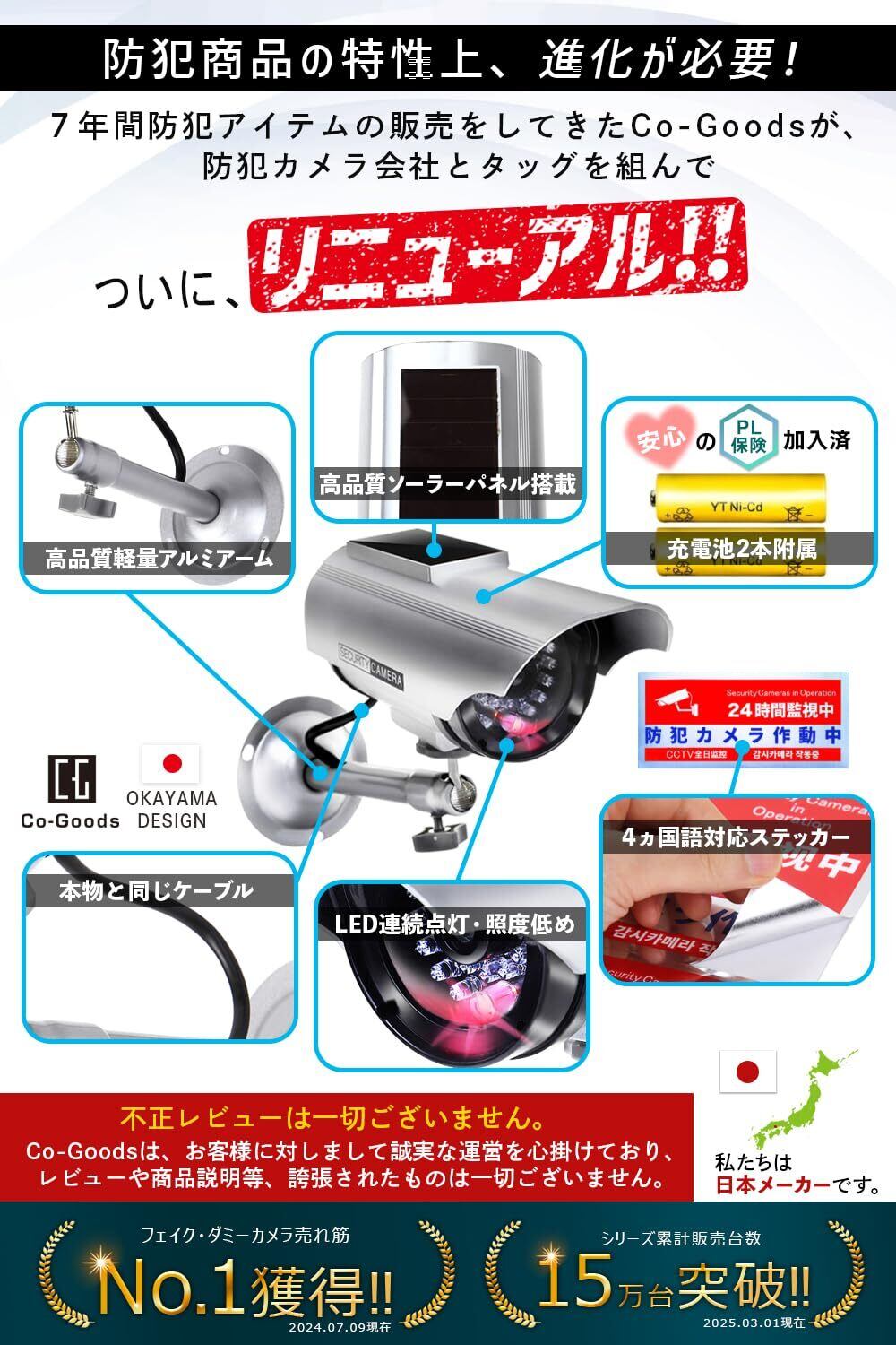 【金属アーム/最新LEDでよりリアルに】防犯カメラ ダミー (手軽にできる防犯)【充電池/多言語防犯ステッカー付属】 防犯グッズ ダミーカメラ ソーラー 防犯ステッカー (対光強化/防水) 監視 ダミー 屋外 Co-Goods(コーグッズ)