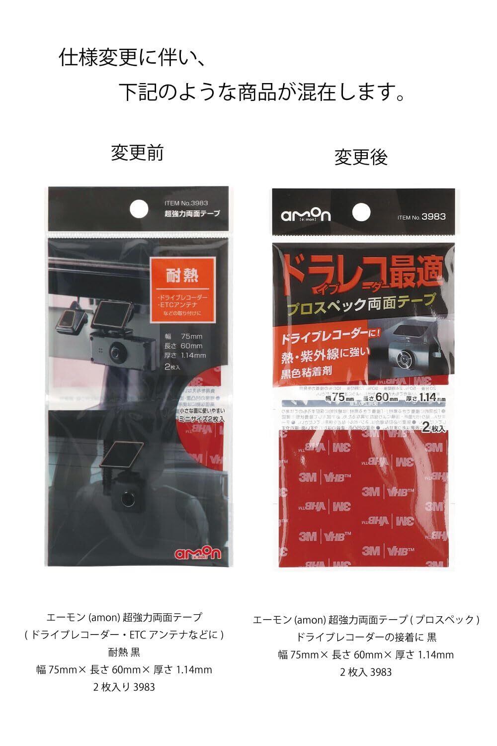 エーモン(amon) 超強力両面テープ(プロスペック) ドライブレコーダーの接着に 黒 幅75mm×長さ60mm×厚さ1.14mm 2枚入 3983