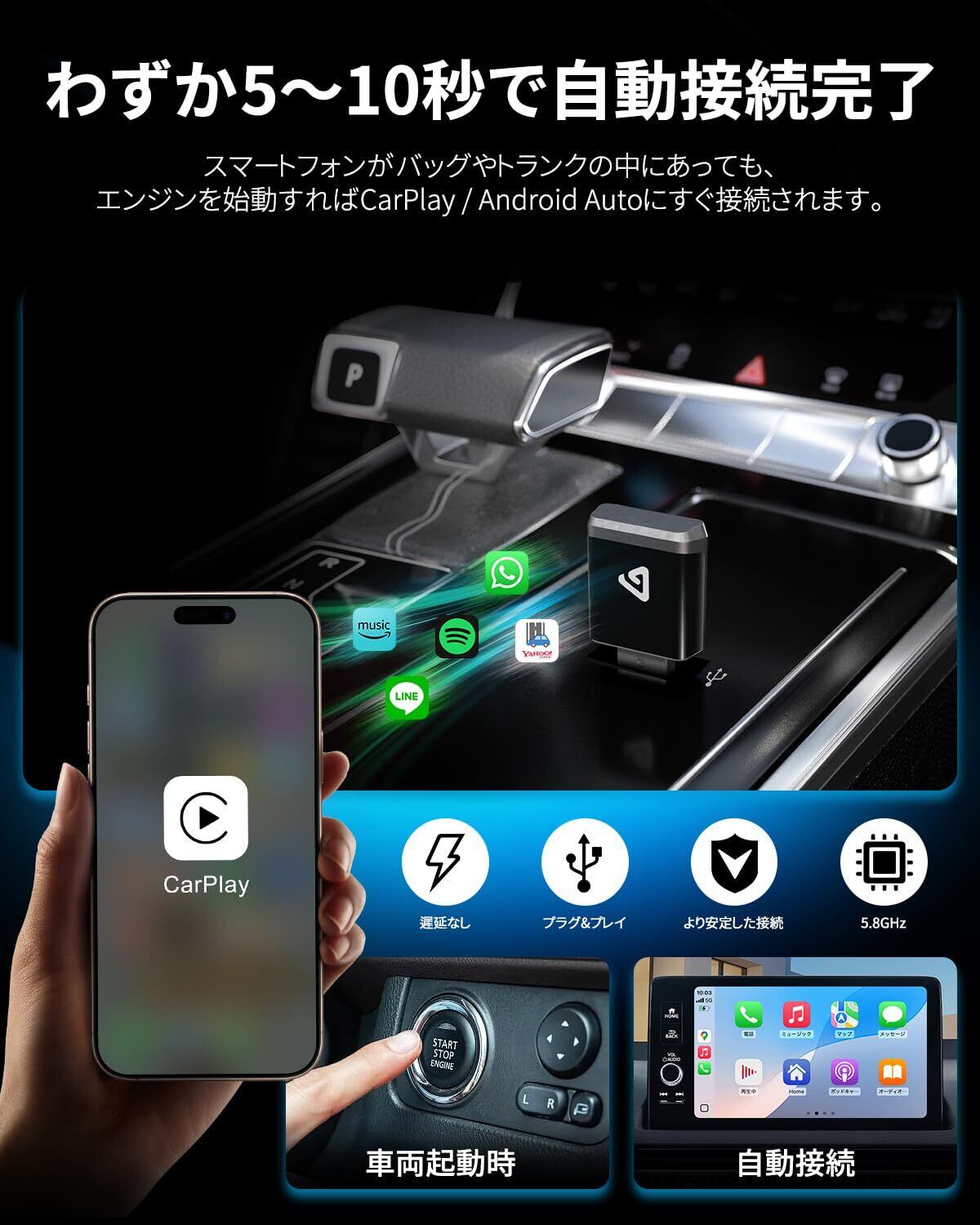 2 in 1:ワイヤレス CarPlay & Android Auto に対応:有線接続の CarPlay / Android Auto をワイヤレスに変換。ナビ、音楽再生、通話、音声アシスタントなどすべての機能をそのままに、スマートで快適なドライブを実現します。