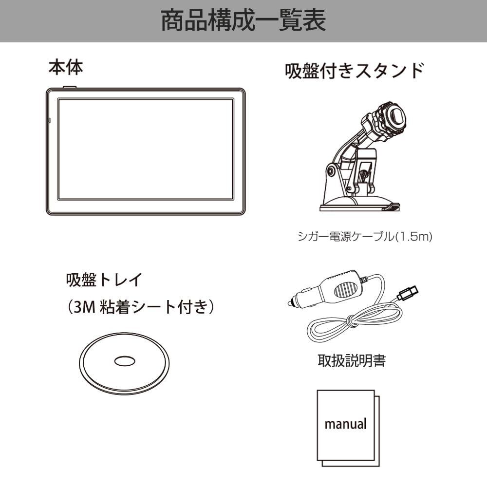 付属コンポーネント 3M両面テープ付き吸盤トレイ, シガー電源アダプター, 取り付けステー(吸盤式), 【日本語取説(本体&ナビ)】