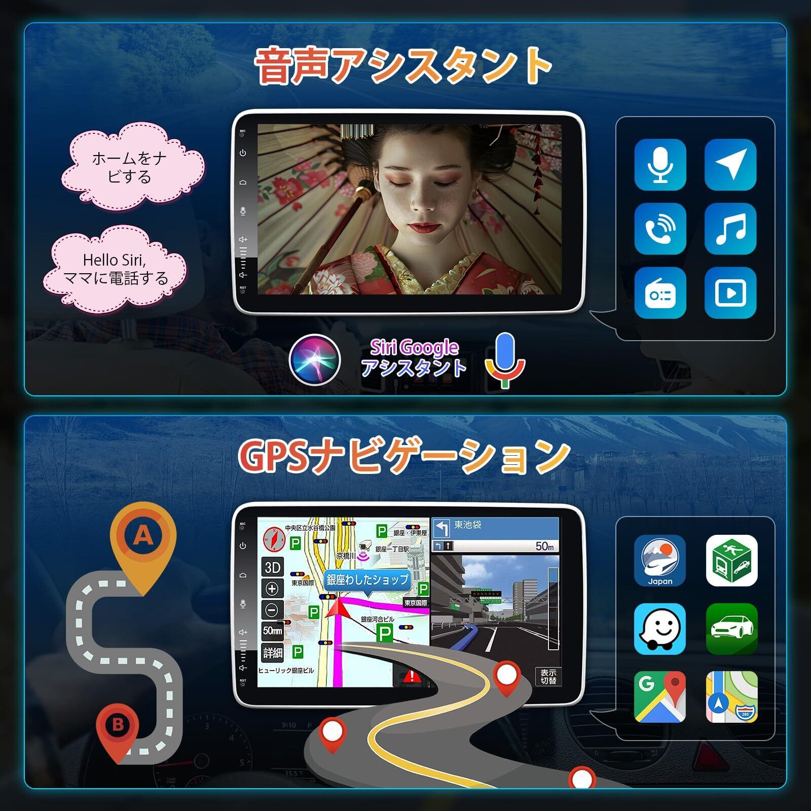 10インチ&1din Andriod カーナビ 4G+64G ディスプレイオーディオ 無線 CarPlay&Android Auto/Mirrorlink 大画面フローティングカーナビ 車でYouTube/Netflix観れる GPS/アンプ内蔵スマートモニター GPS内蔵 Bulethooth LRV バックカメラ付き/FM 対応カーステレオ 技適取得