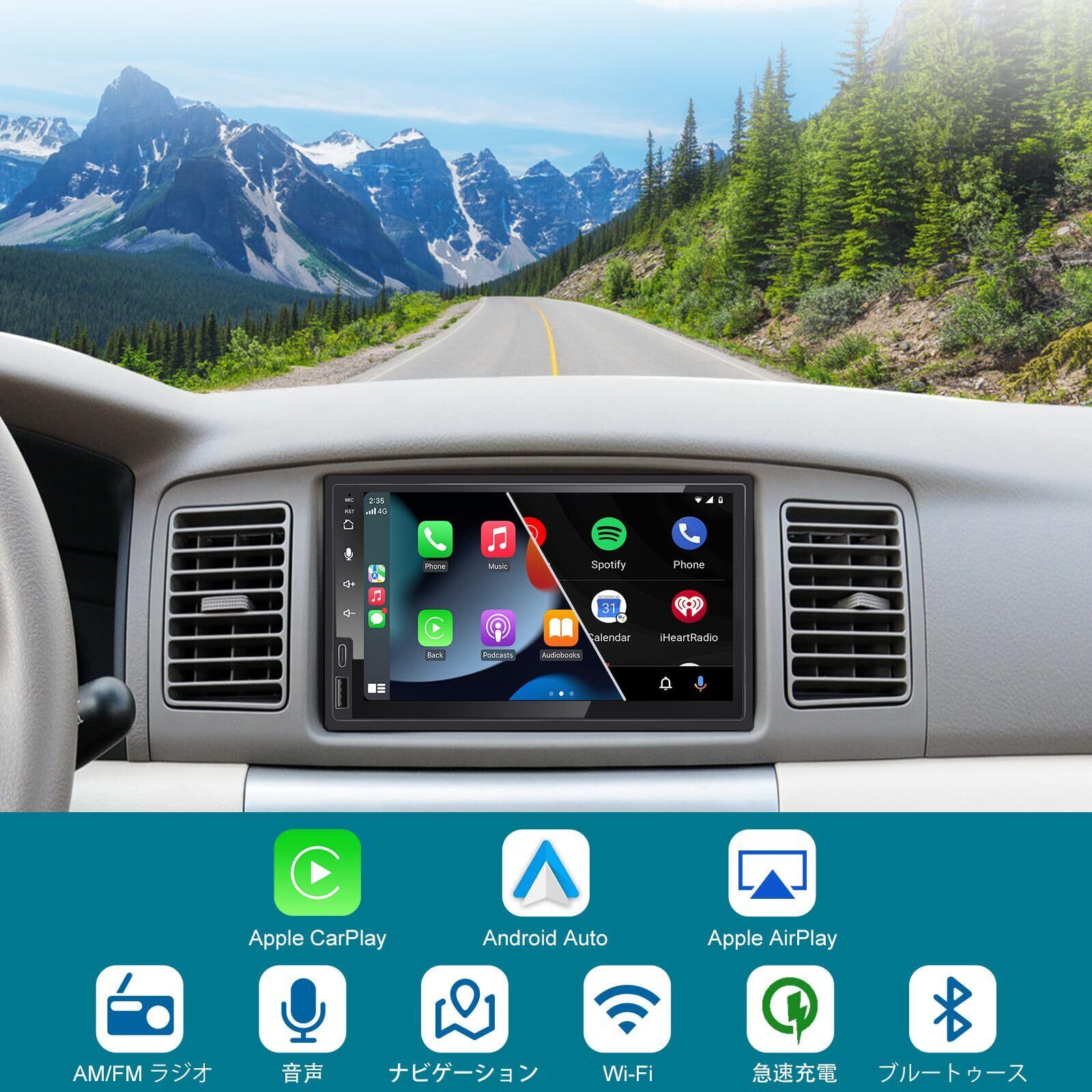 【豊富な機能とプロのアフターサービス】ダブルディン carplayには追加機能があります: USB/AUX入力、AM/FMラジオ、オーディオ/ビデオ出力、7色LED、ステアリングホイール制御、フロント&バックアップカメラビデオ入力、動画、音楽、写真などを高精細解像度で再生可能、動作電圧: DC 12V、最大出力: 4x50W。CarPlayやAndroid Atuoでスマートフォンと接続し、スマホのナビを更新するだけで最新のナビ機能を常にご利用いただけます。技適認証番号:210-201908