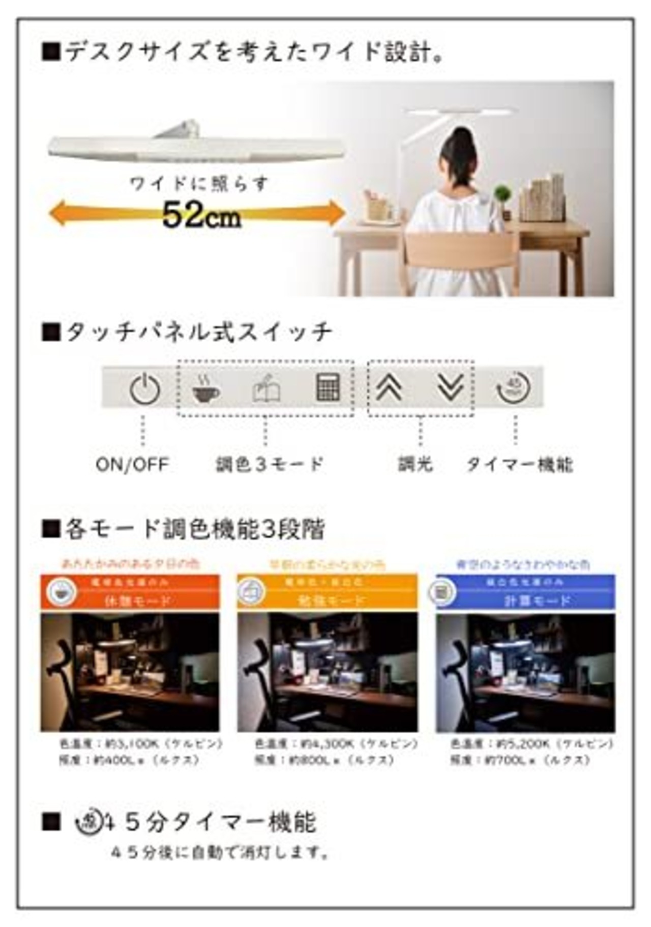 ●タイマー機能付き(点灯開始45分後、自動消灯)