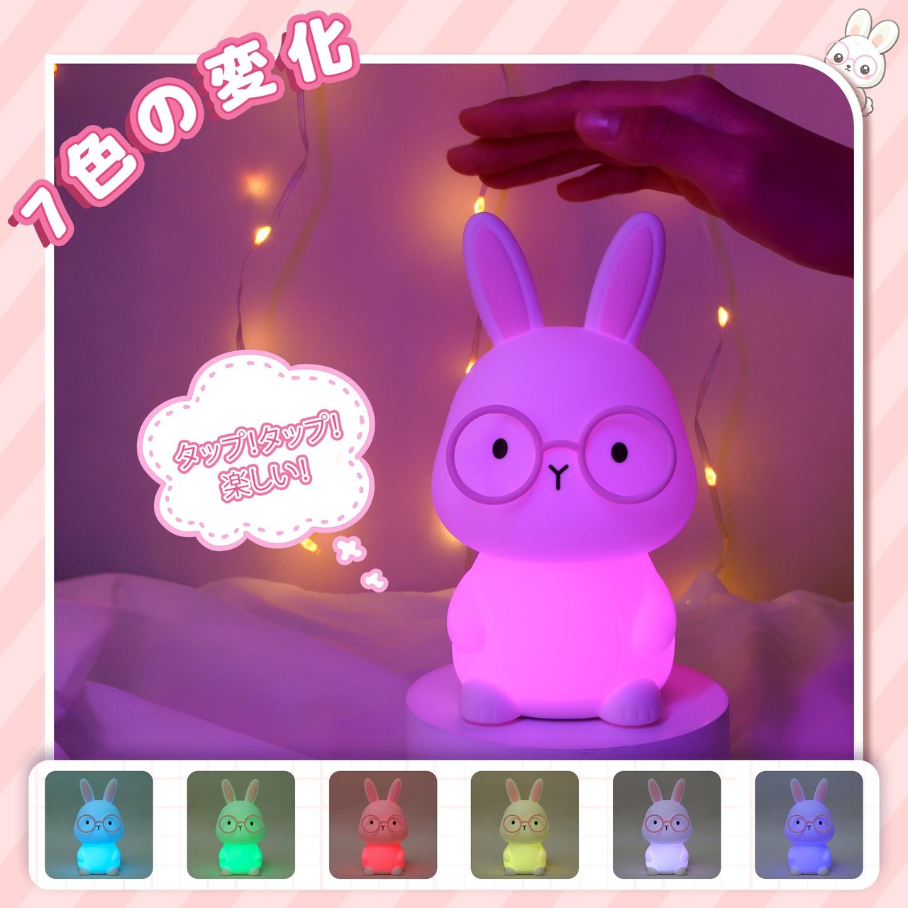 充電式 & 調光対応 Attivolife うさぎ ライト シリコンランプ, 7色変化 タイマー機能付き 保育園 寝室 デスク おしゃれ ナイトライト, 誕生日 クリスマス ギフト に最適 (女の子 男の子 赤ちゃん 子ども 向け)