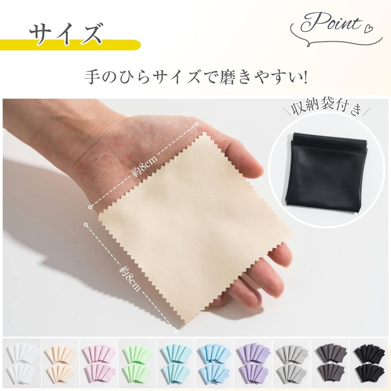 シルバー磨き 金属磨き シルバークロス シルバー磨きクロス 金属磨きクロス 10枚セット 8x8cm PUレザー収納袋付き 10色展開 アクセサリー 洗浄 ジュエリークロス ポリッシングクロス シルバーお手入れ 汚れ落とし コンパクト 銀用 ジュエリー 貴金属 銀製品 指輪 腕時計(A・ブラック,A・8×8cm 10枚入り)