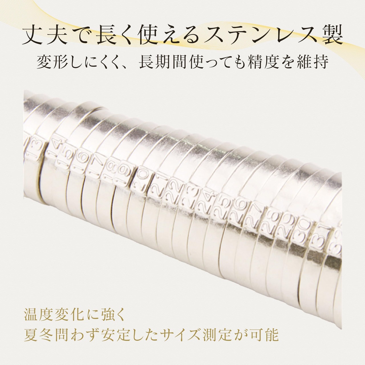 【日本標準規格に対応】1号~30号まで幅広く対応し、日本のリングサイズ規格に基づいて正確に計測できます。指輪選びやサイズ確認に最適です。