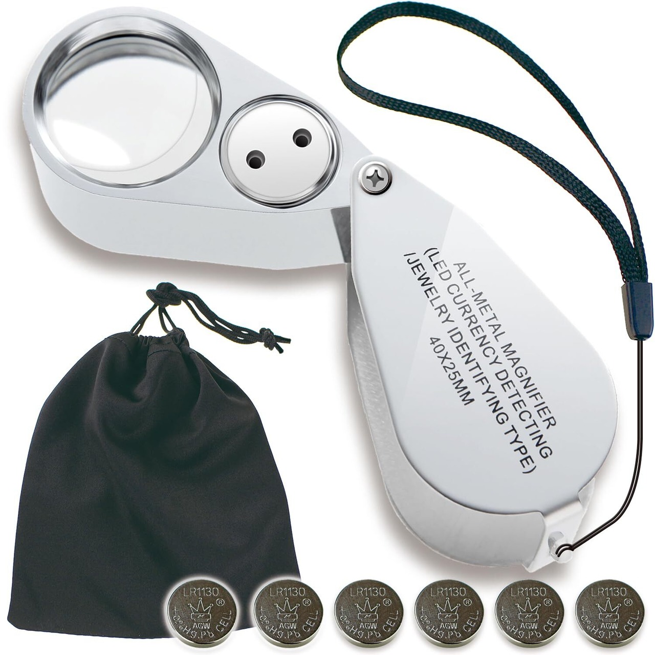 Phoenix 宝石鑑定用 ジュエリールーペ【倍率40倍】LEDライト<長期45日間>拡大鏡 ルーペ