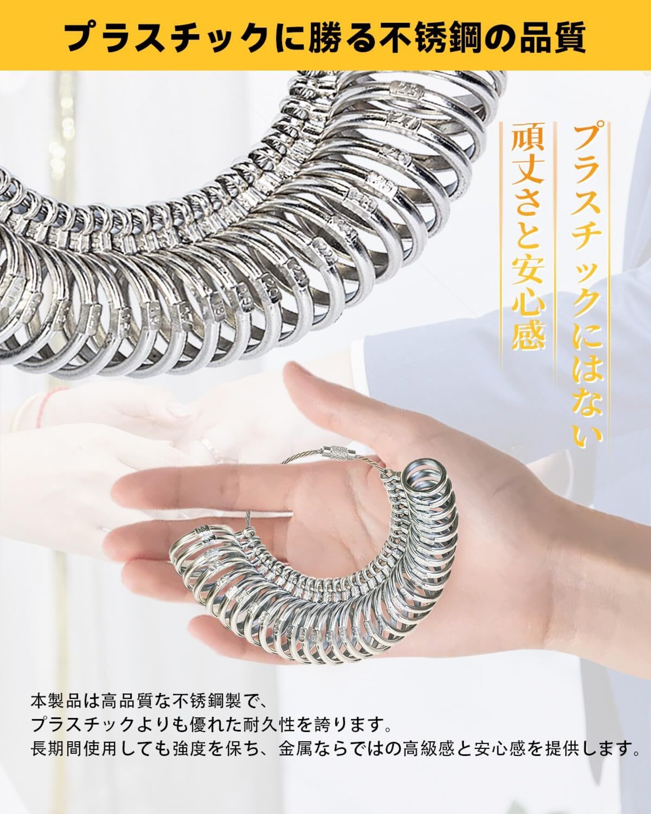 【 買い替え不要でずっと使えるから安心】耐久性に優れた金属製のリングゲージは、何度使用しても歪まず、長期間にわたり正確な指輪 サイズ 計測が可能。ひとつ持っておけば、家族全員の測定にも長く対応できます。