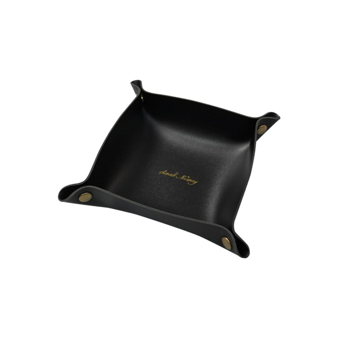 【選べる14色】 アクセサリートレイ レザー おしゃれ 小物置き 折りたたみ 韓国 北欧 鍵置き 玄関 指輪 デスク 卓上 旅行 小物入れ アクセサリートレー 収納 持ち運び 携帯 レザートレー 時計 ピアス 黒 白 水色 (ブラック)