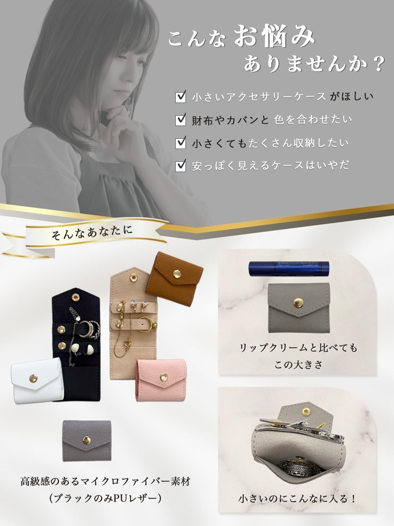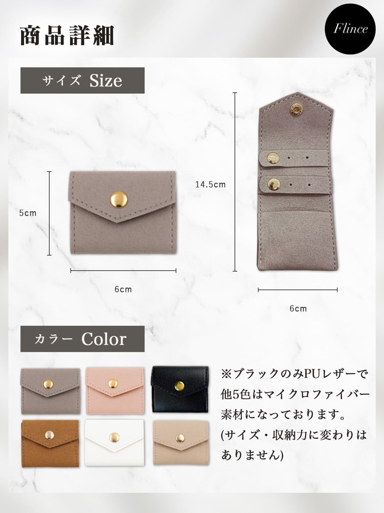 Flince アクセサリーケース 持ち運び ジュエリー リング ピアス ミニ ジュエリーポーチ 携帯用 ポーチ リング 指輪 (ブラック)