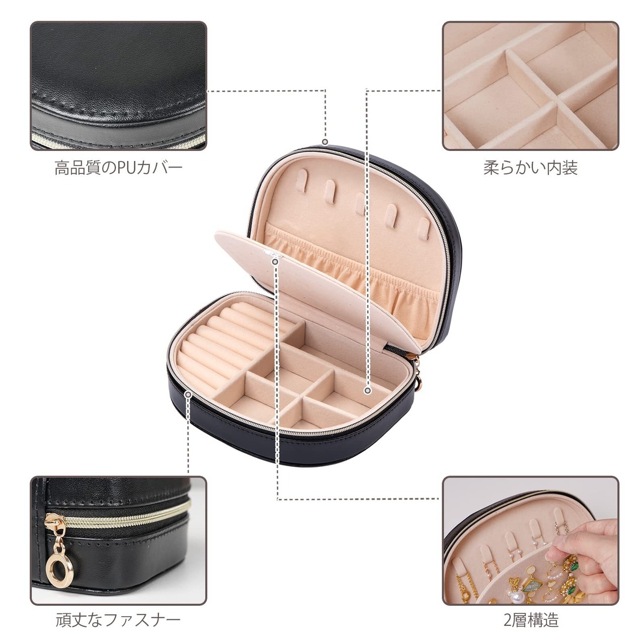 ProCase 小さなジュエリーボックス 半円形 小型宝石箱 旅行・出張用 女性 アクセサリ ジュエリー収納 ブラック・Mサイズ