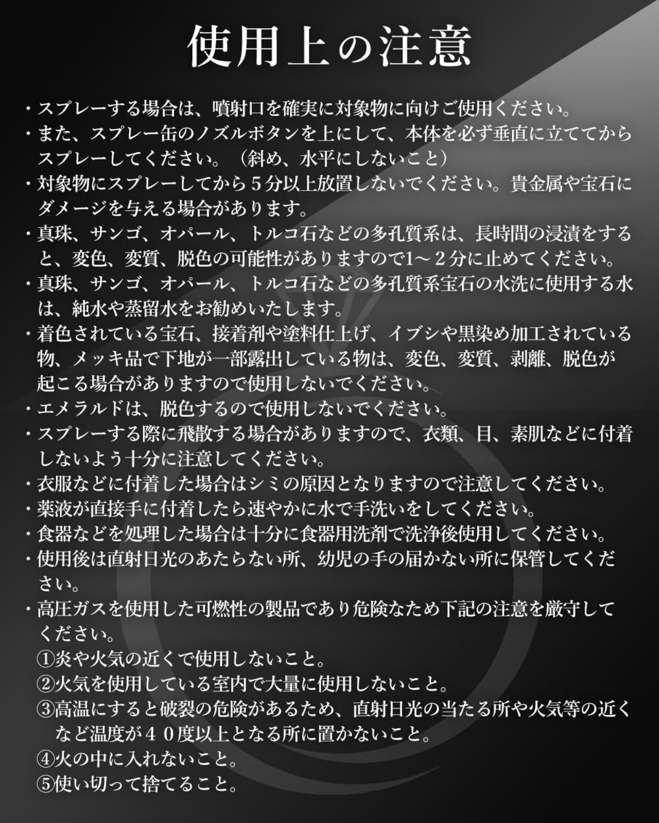 宝石や真珠などデリケートな宝石類が付いているアクセサリーにも安心な中性タイプの貴金属メンテナンス商品です。
