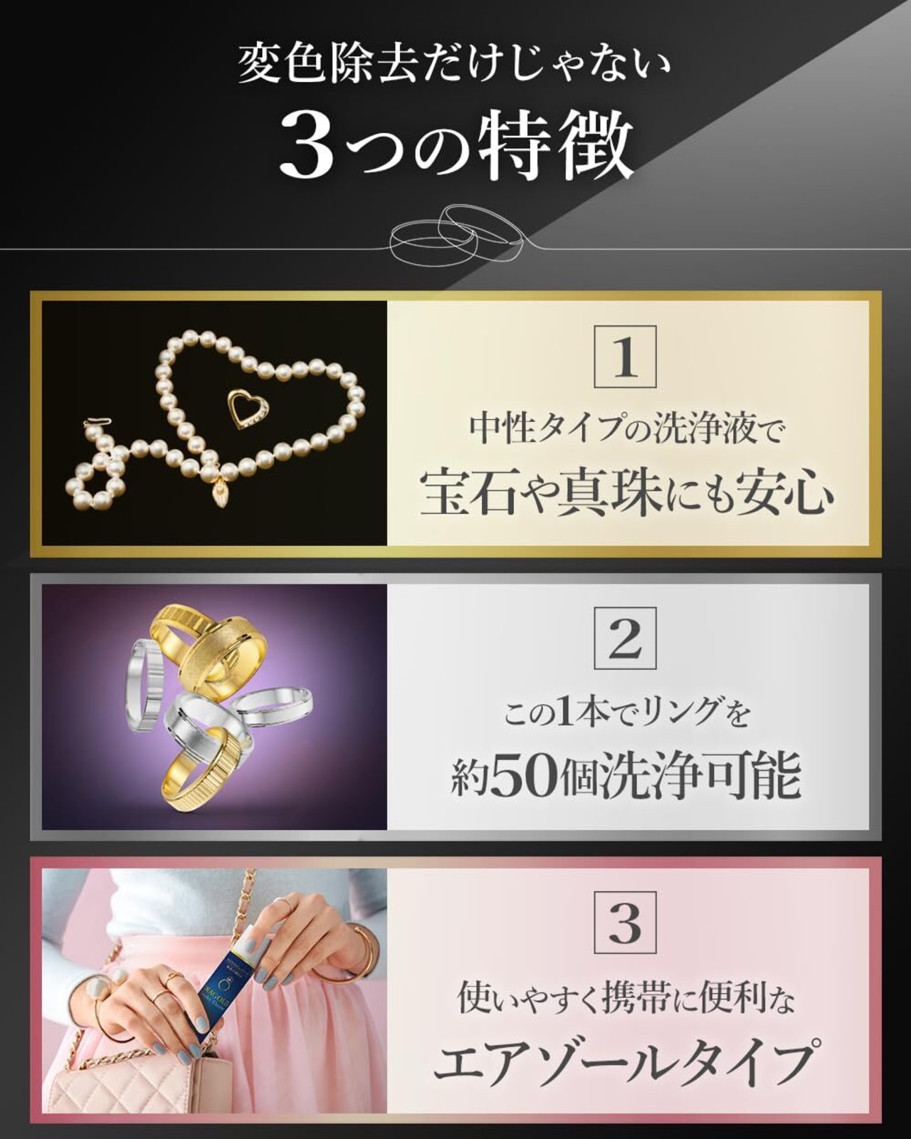 ゴールド、シルバー、プラチナ、ダイヤモンド、真珠など様々なジュエリーに使用でき、新品の輝きを取り戻すジュエリークリーナーです。