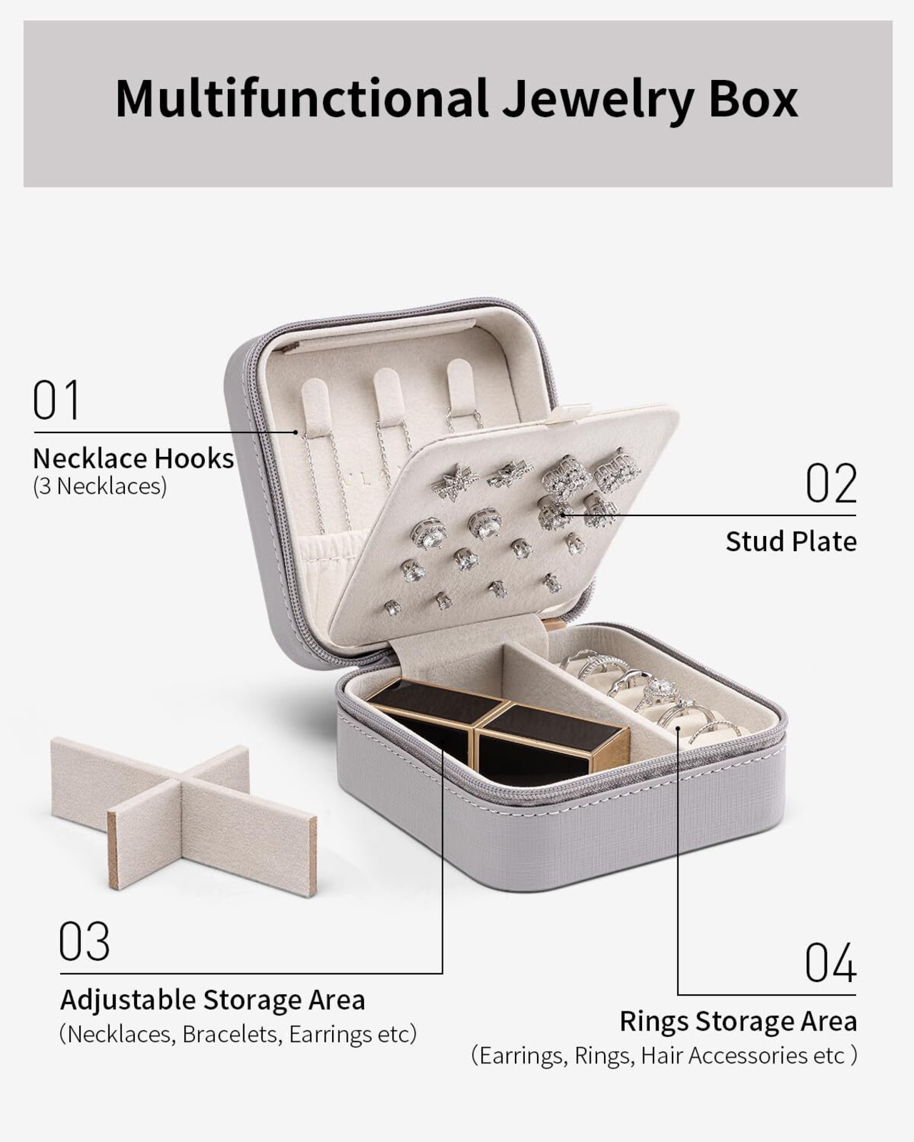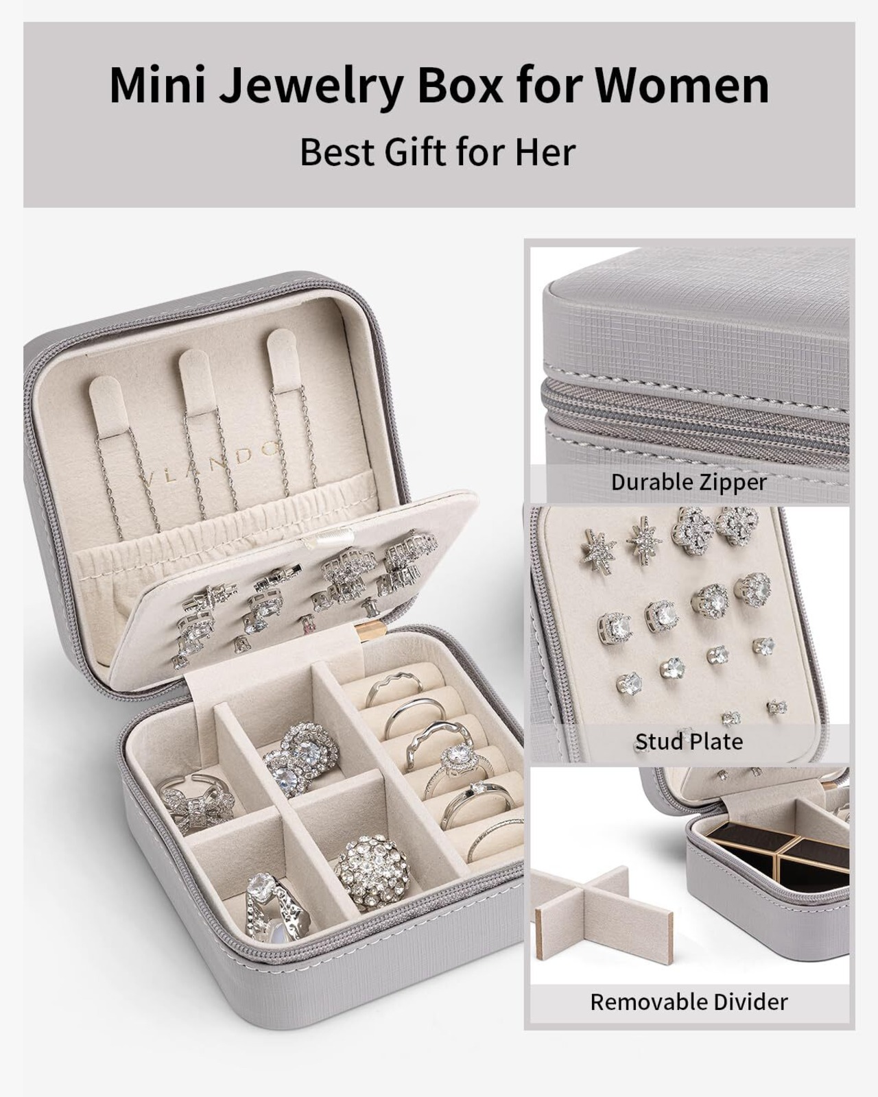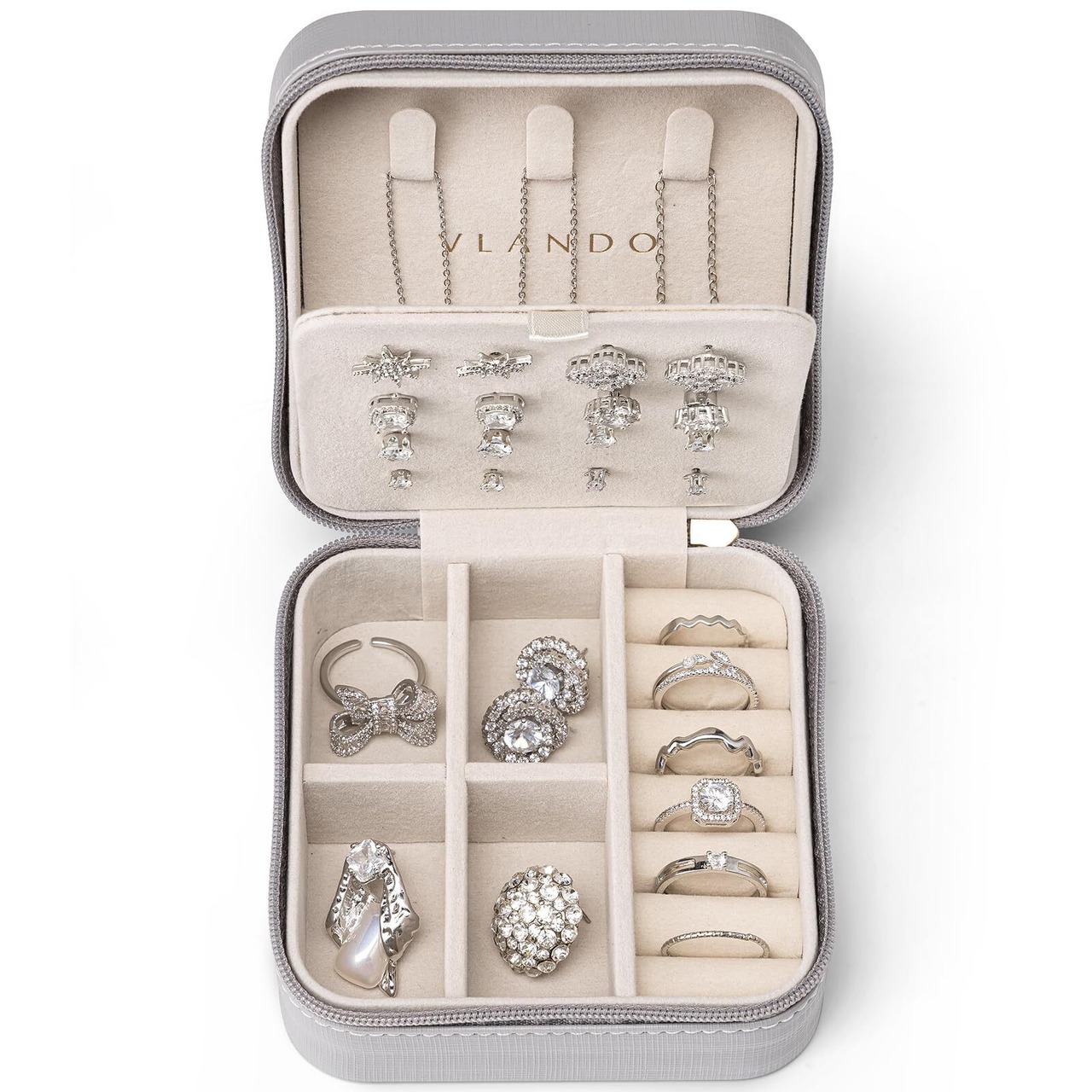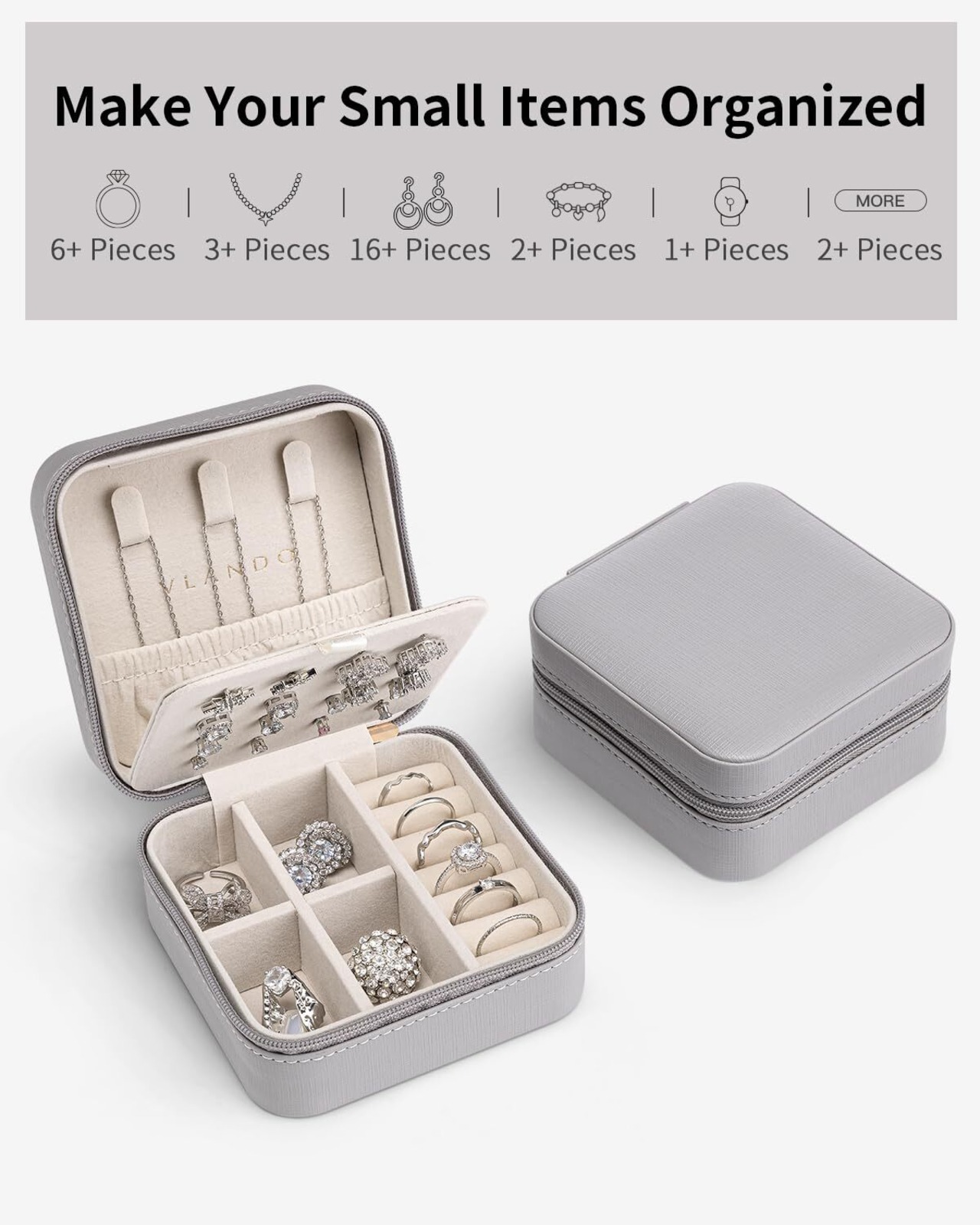 Vlando 正方形アクセサリーケース 持ち運び 小物入れ ジュエリーケース 持ち運び イヤリング 収納 誕生日プレゼント-グレー