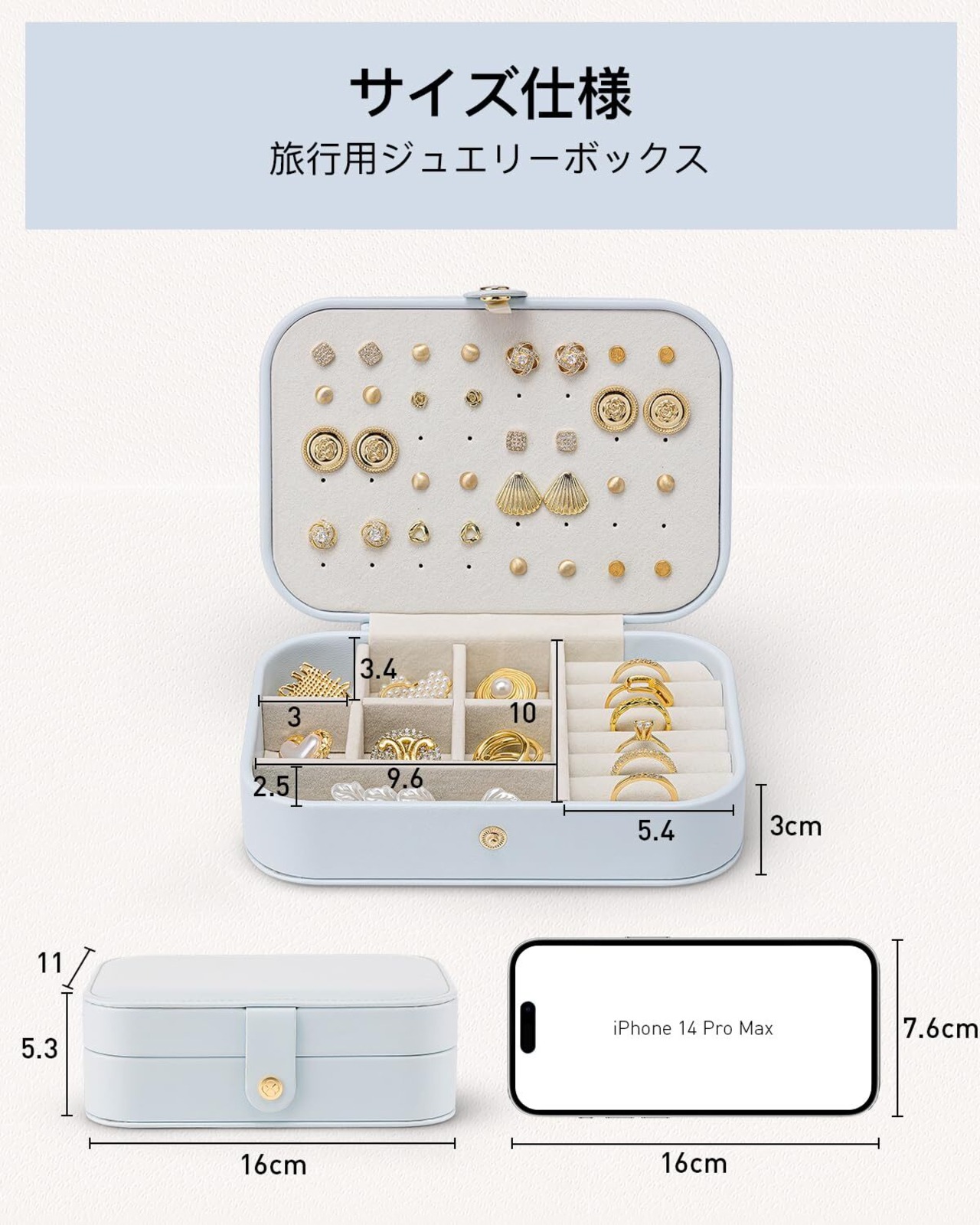VLANDO ジュエリーボックス 持ち運び ピアスケース 携帯用 コンパクト アクセサリーケース 可愛い 旅行用 ジュエリー ミニ ピアス リング アクセサリー収納 (ブルー)