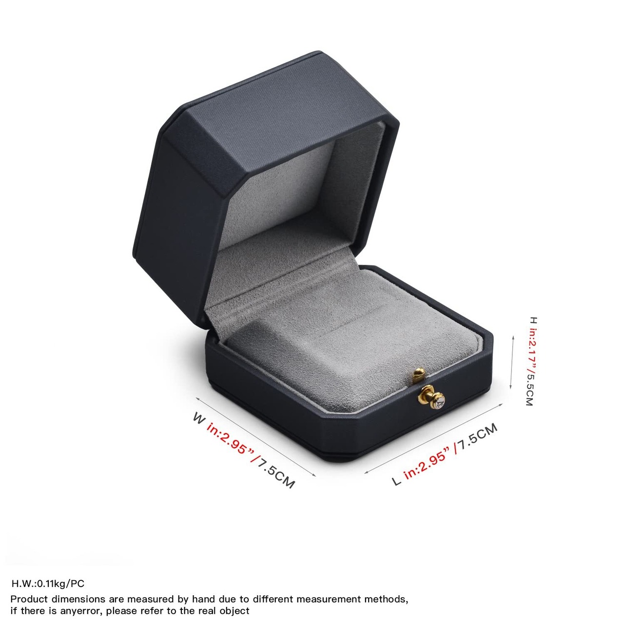 【こだわりのデザイン】この指輪ケースは伝統的な四角や丸型とは異なり、クラシックでユニークな八角形のデザインが、一目で目立ち、ブランド認知度を高めるだけでなく、リングボックスをより重層的で高級感のあるものにしています。ケースの開閉は簡単で、前方の金具を押すだけでパカッと開きます。リングケースの上部(蓋部分)を深くすることで、大きなジュエリーも収納できます。