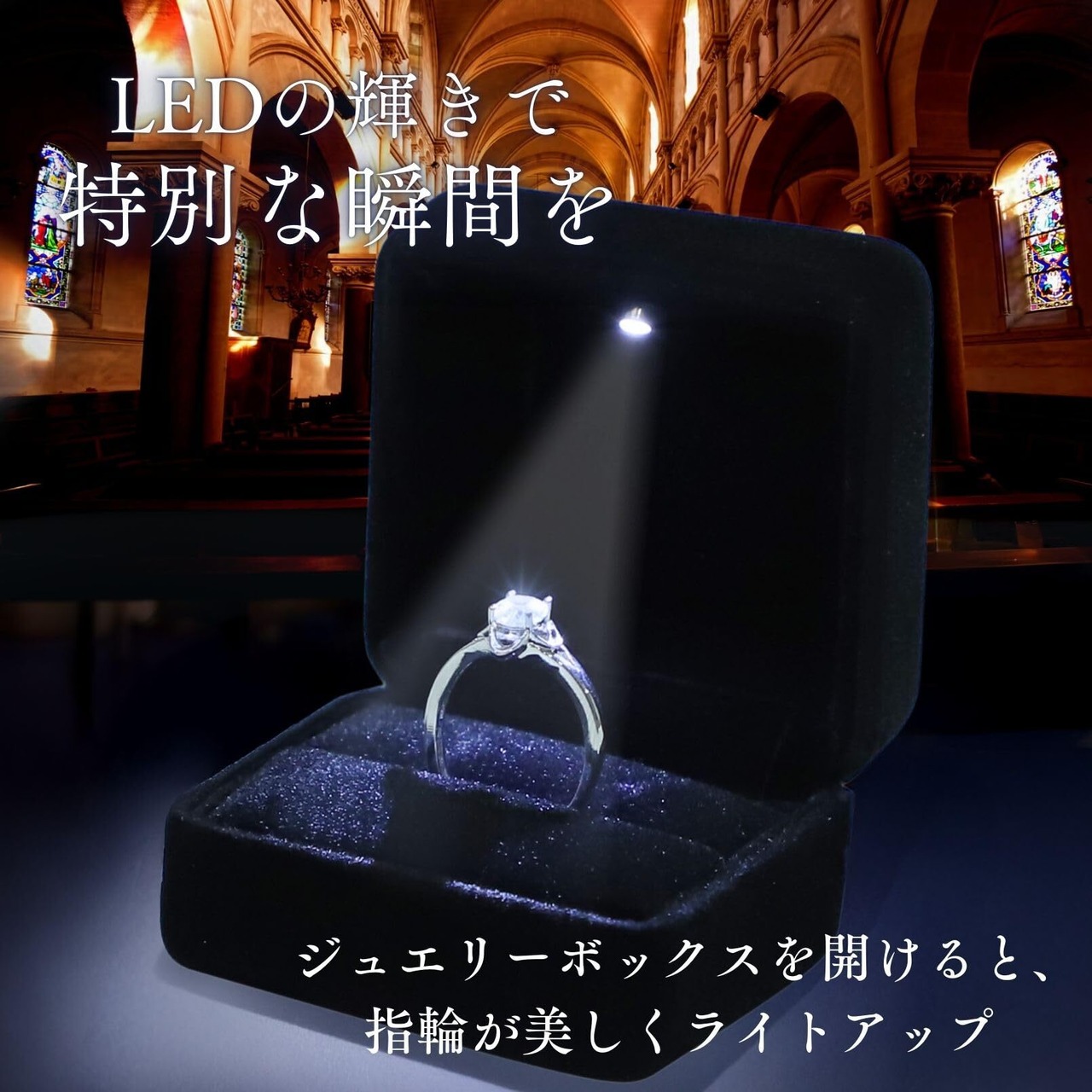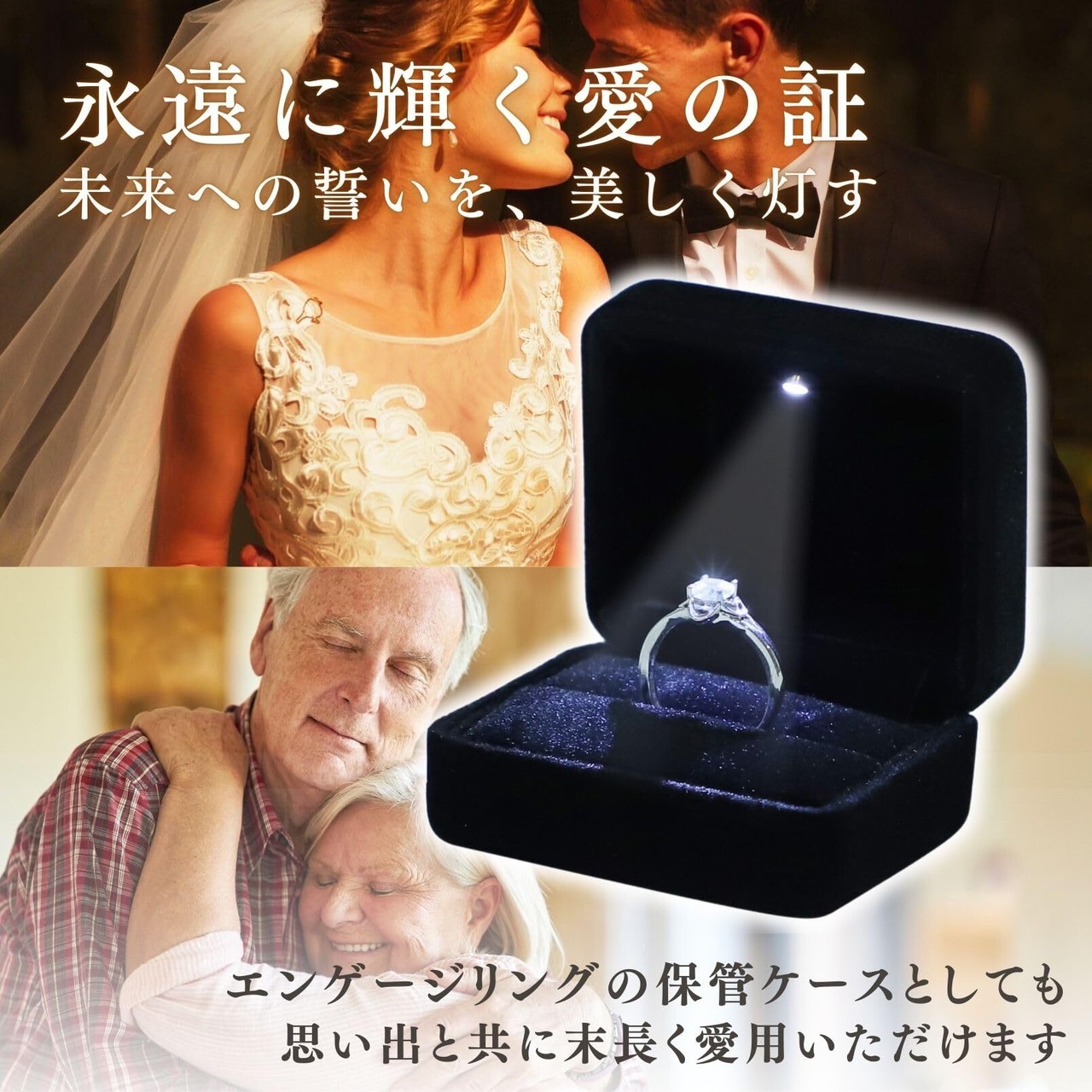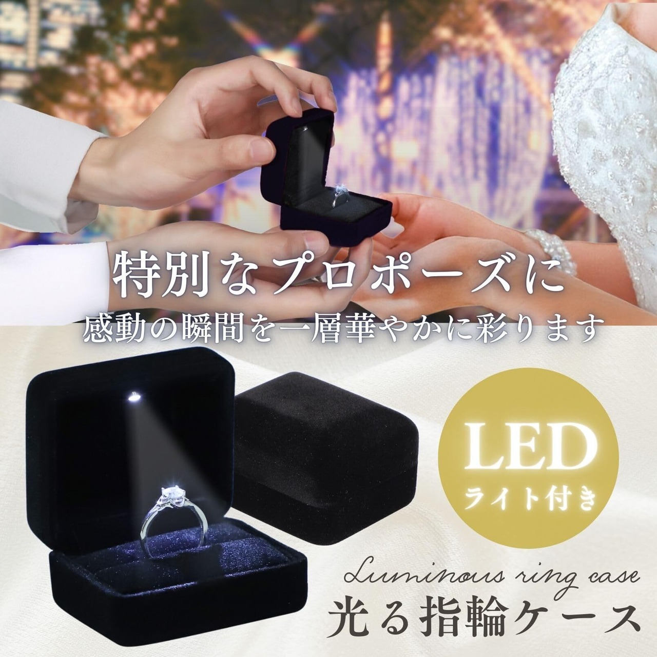 【光る指輪ケース プロポーズに最適】 この「光る指輪ケース」は、特別なプロポーズシーンで活躍します。箱を開けた瞬間にLEDライトが指輪を照らし、感動の瞬間を一層華やかに彩ります。