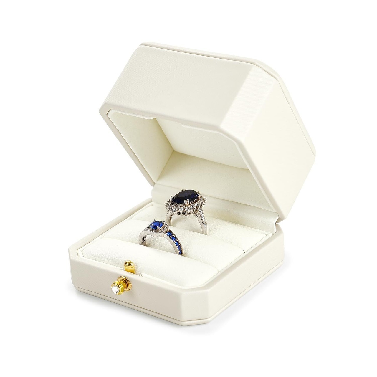 【こだわりのデザイン】この指輪ケースは伝統的な四角や丸型とは異なり、クラシックでユニークな八角形のデザインが、一目で目立ち、ブランド認知度を高めるだけでなく、リングボックスをより重層的で高級感のあるものにしています。ケースの開閉は簡単で、前方の金具を押すだけでパカッと開きます。ケースの上部(蓋部分)を深くすることで、大きなジュエリーも収納できます。