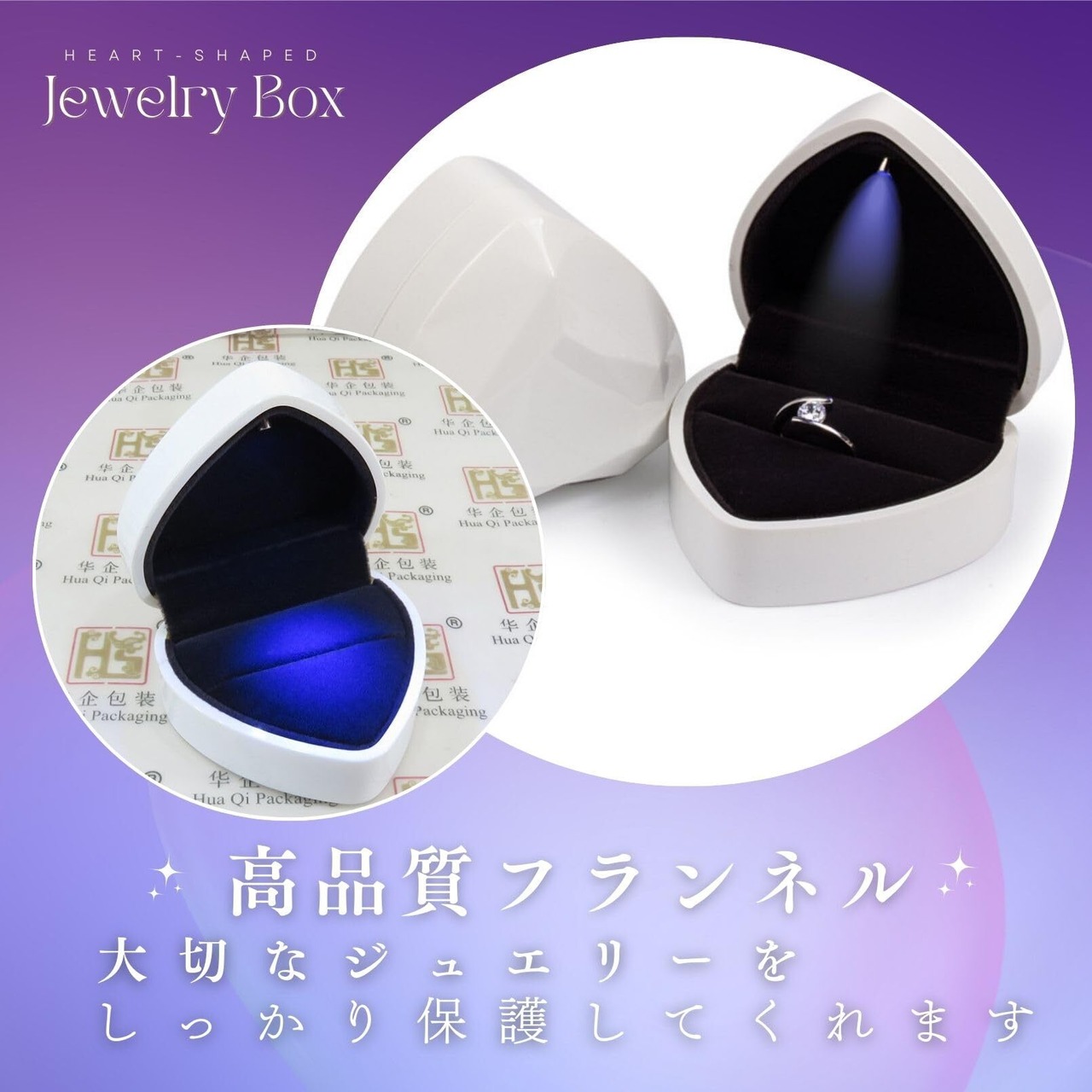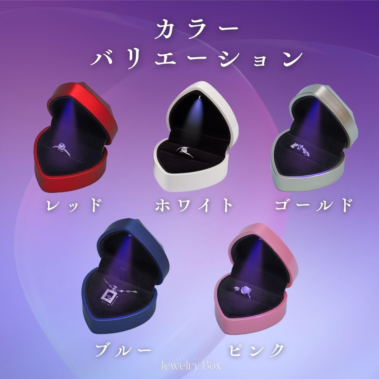 ハート型のデザインとLEDライト付きのこの指輪ケースは、誕生日や記念日、