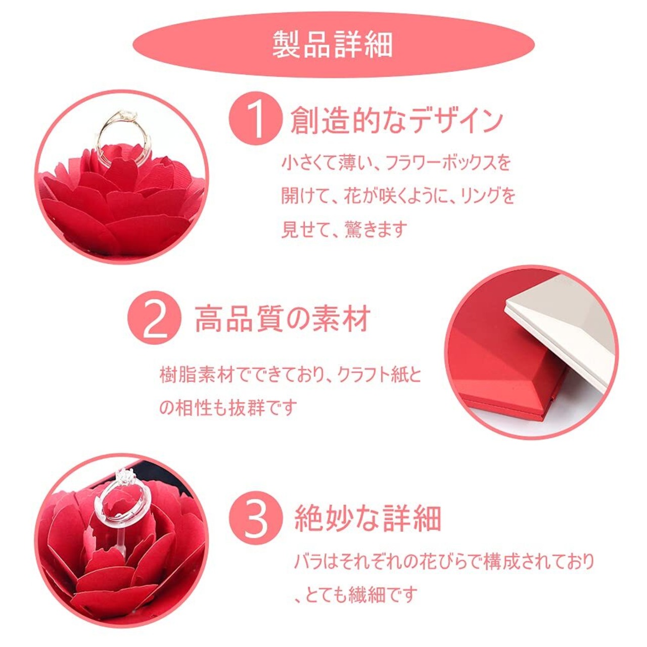 ユニークなデザイン:内部に3Dのバラの花とリングホルダー。エレガントなローズスタイルのデザインは、リングボックスをユニークでクリエイティブにします。
