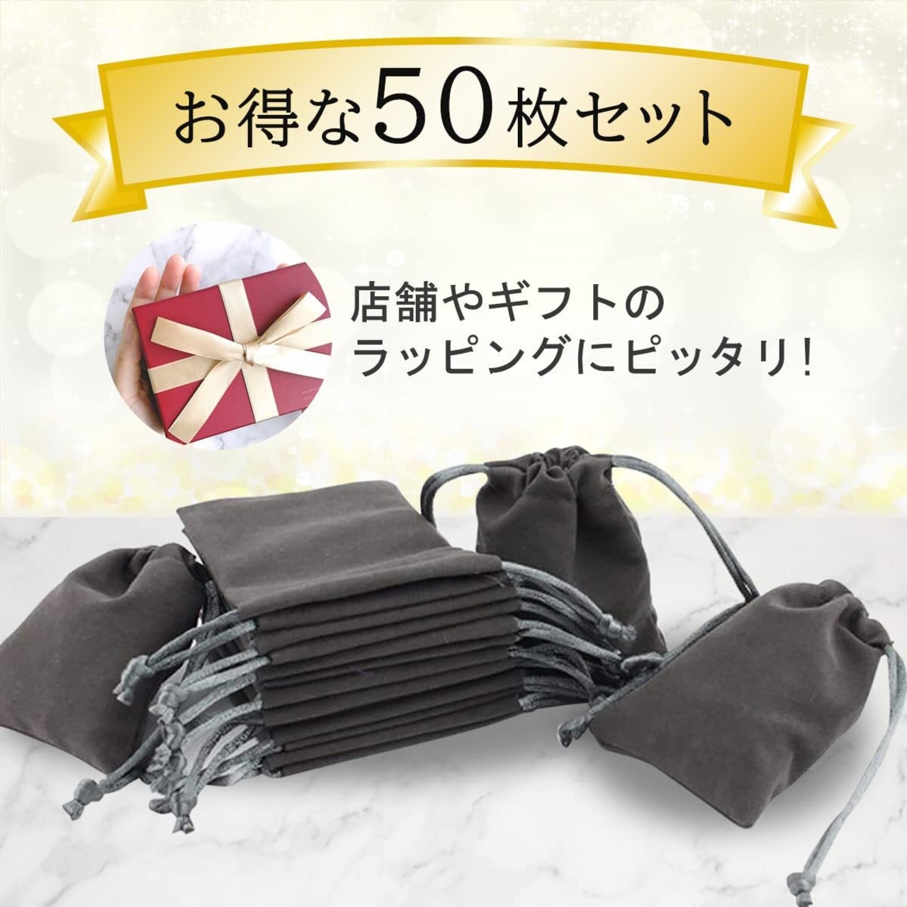dodtazz ジュエリーポーチ アクセサリー 収納 巾着袋 柔らかい生地 ギフト 小物入れ 宝石 (シルバーグレイ/50枚)